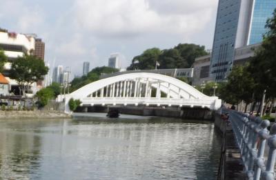 シンガポール川の河口から数えて5本目の橋です。河口からほんの1kmもないのですが。4本目の橋からこの橋までの間は川幅が広いのですが、ここから狭くなって上流に続きます。