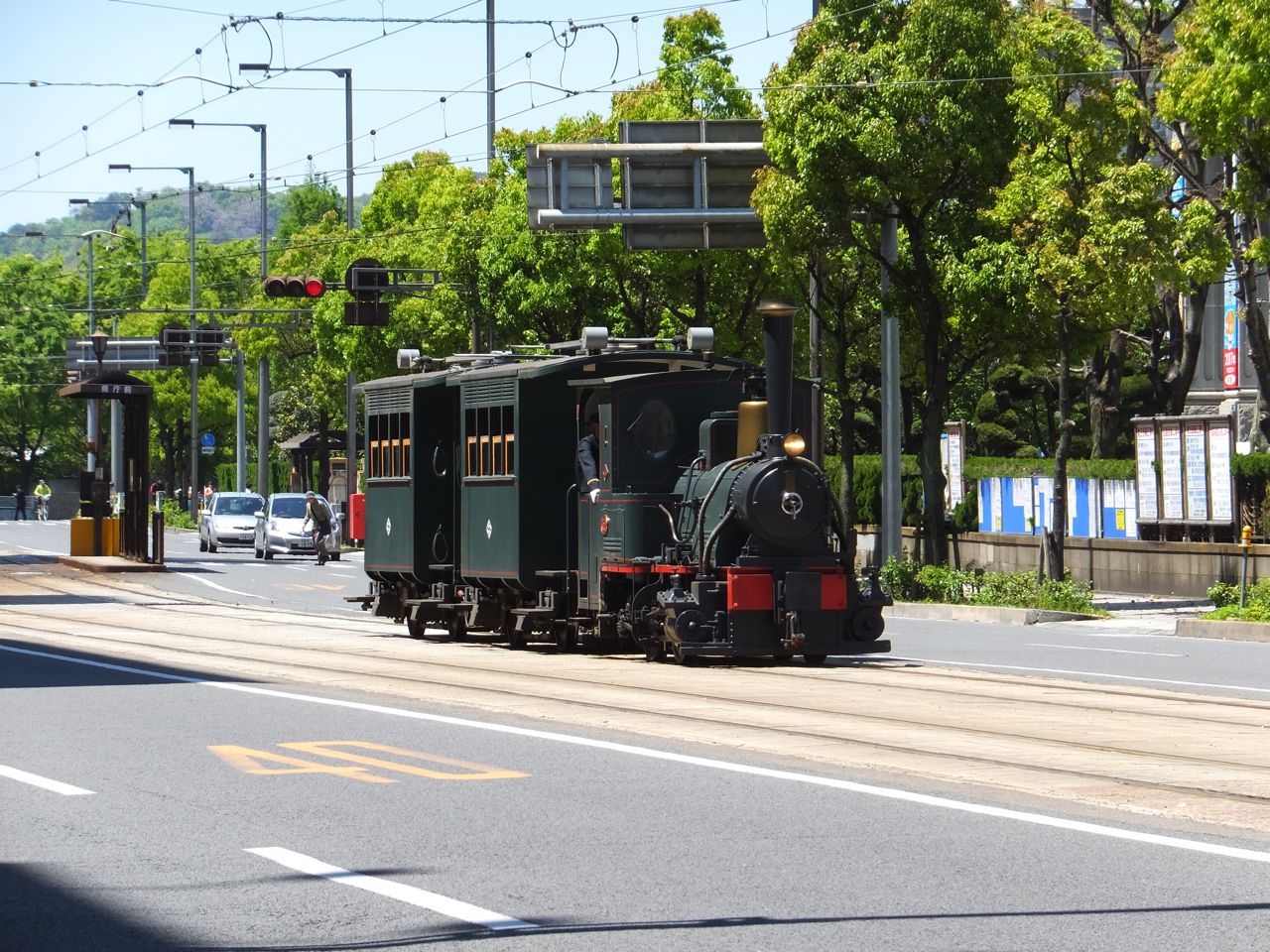 松山の市内を走る市電の線路上をなぜか蒸気機関車が走る、という。