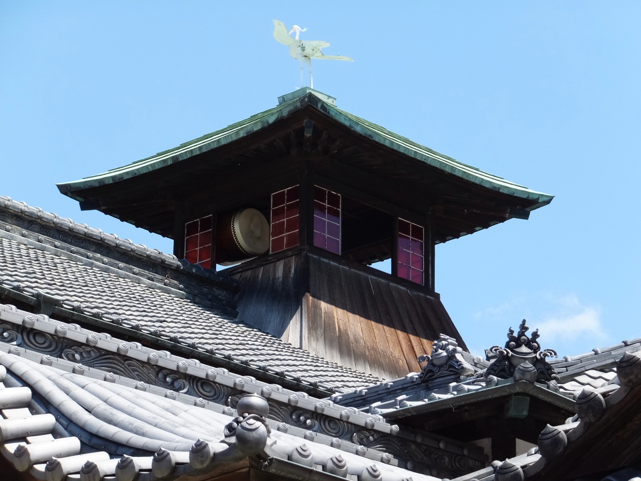 道後温泉のてっぺんに乗る太鼓楼のこと。太鼓が1日3回なります。