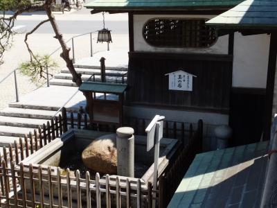 道後温泉の湯釜は現役の浴場で使用されているもの以外に、過去に使用されていたものとして、駅前の足湯に使われているものもありますが、それ以前、1000年以上前から使われていたと言われるものが道後温泉の手前の道後公園の中に展示されています。足湯のところのものより大きく感じます。湯釜薬師、という立て札が横にあったので、神様扱いのようです。ただ、温泉街から歩いて見にきてもあまり感動はないと思いますので、時間があれば、といったところでしょうか。