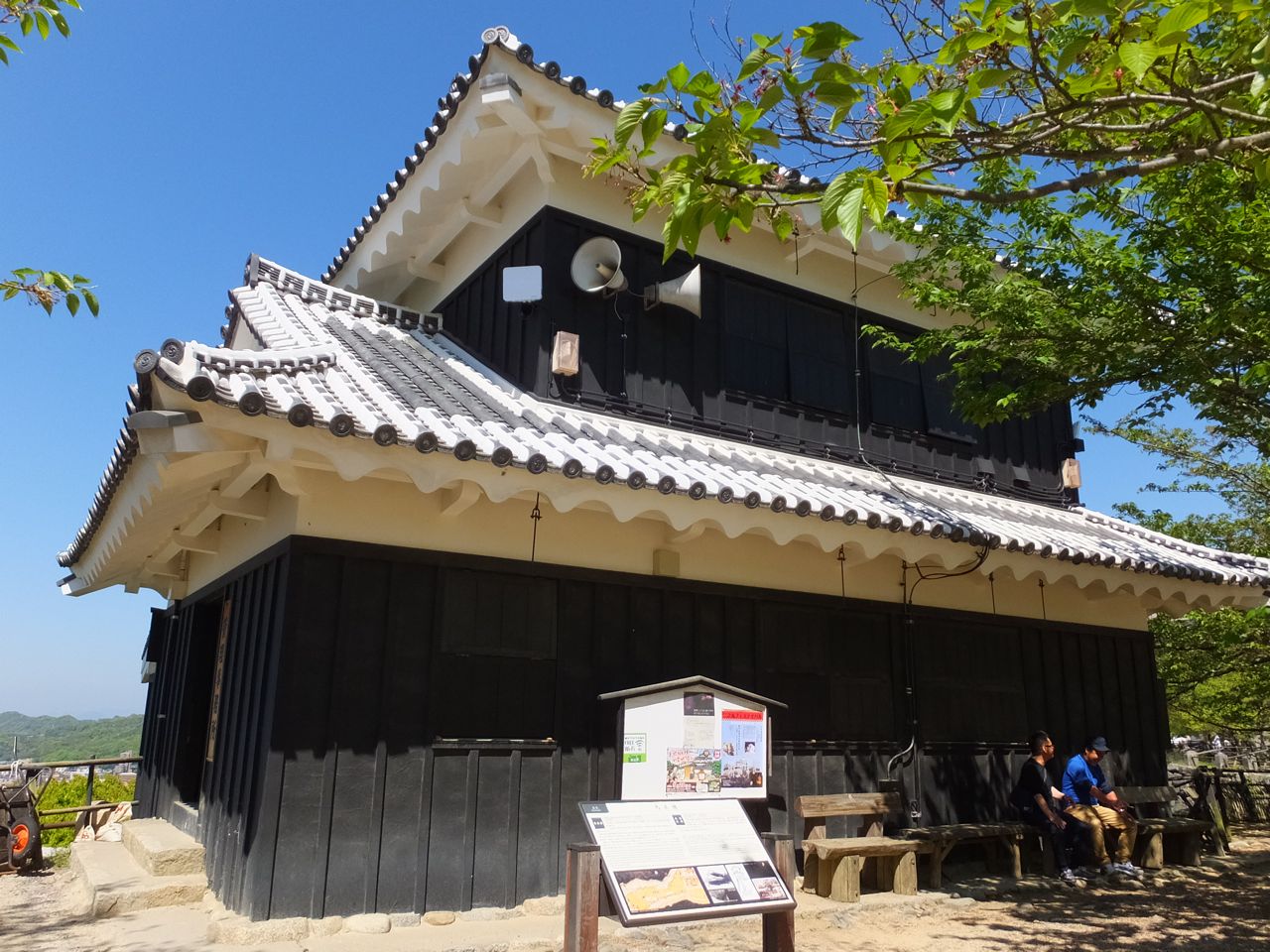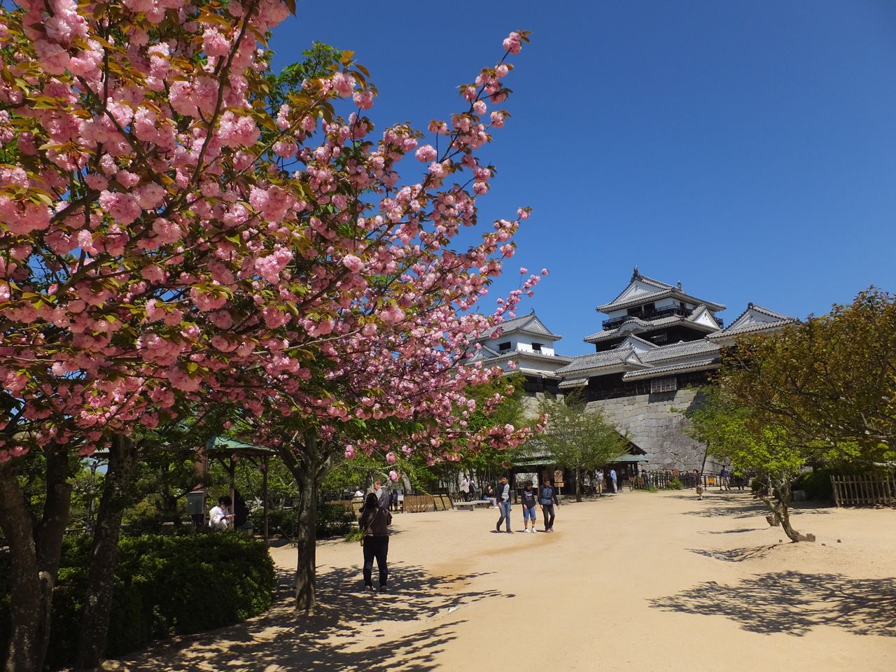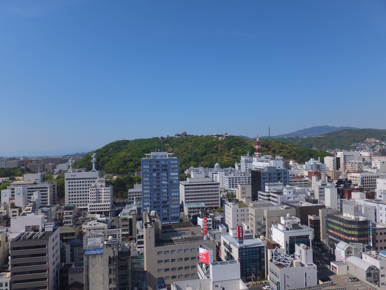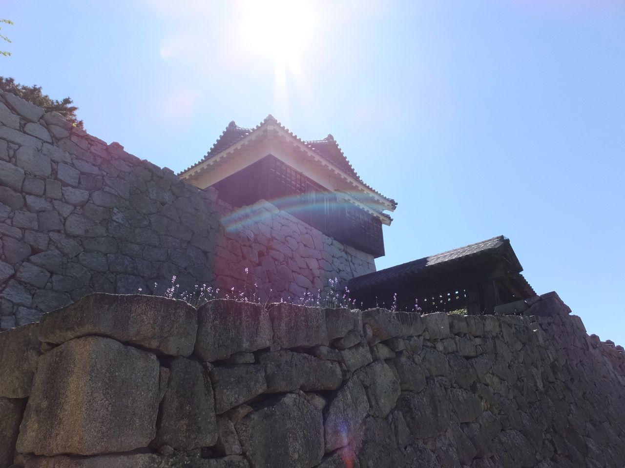 大天守と小天守、それと北隅櫓と南隅櫓の4つの櫓とその間を結ぶ通路状の櫓で四角形になり、その中に中庭があり、ここが天守への入口になります。この構造を連立式天守といいます。中に入ることができ、天守からの松山市や瀬戸内海の眺めはすばらしいです。標高約160mです。天守閣自体はそう高いものではないですが、城山の標高が高いのですばらしい松山の展望台です。城に登った登頂感が味わえます。