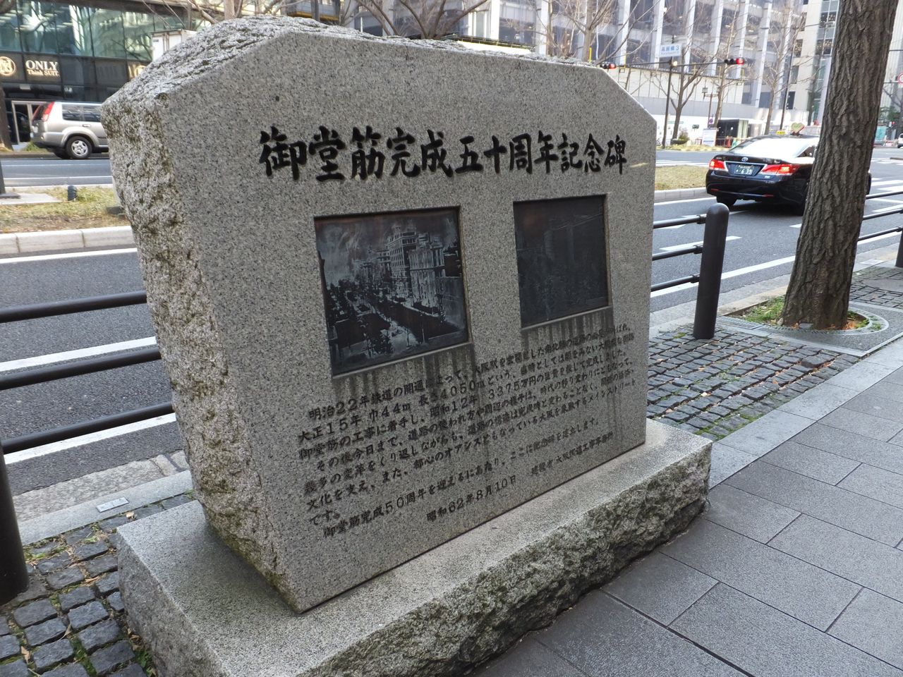 この御堂筋もほとんどクルマの走っていなかったであろう大正15年にこの広さの道ができていることにびっくりです。その歴史を誇りたくなる気持ちは碑文からもよくわかりました。