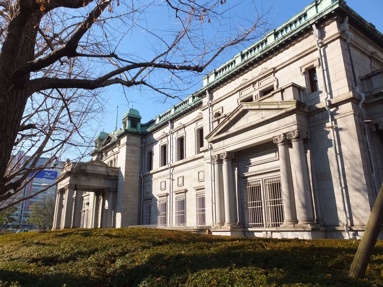 一般人には関係のない銀行なので人ごみもなくそこにある感じ。正面はつつじの植え込みで冬でも緑いっぱい。低い角度から写真を撮ると緑の中に建物が浮いてみえてきれいです。- 旅行時期