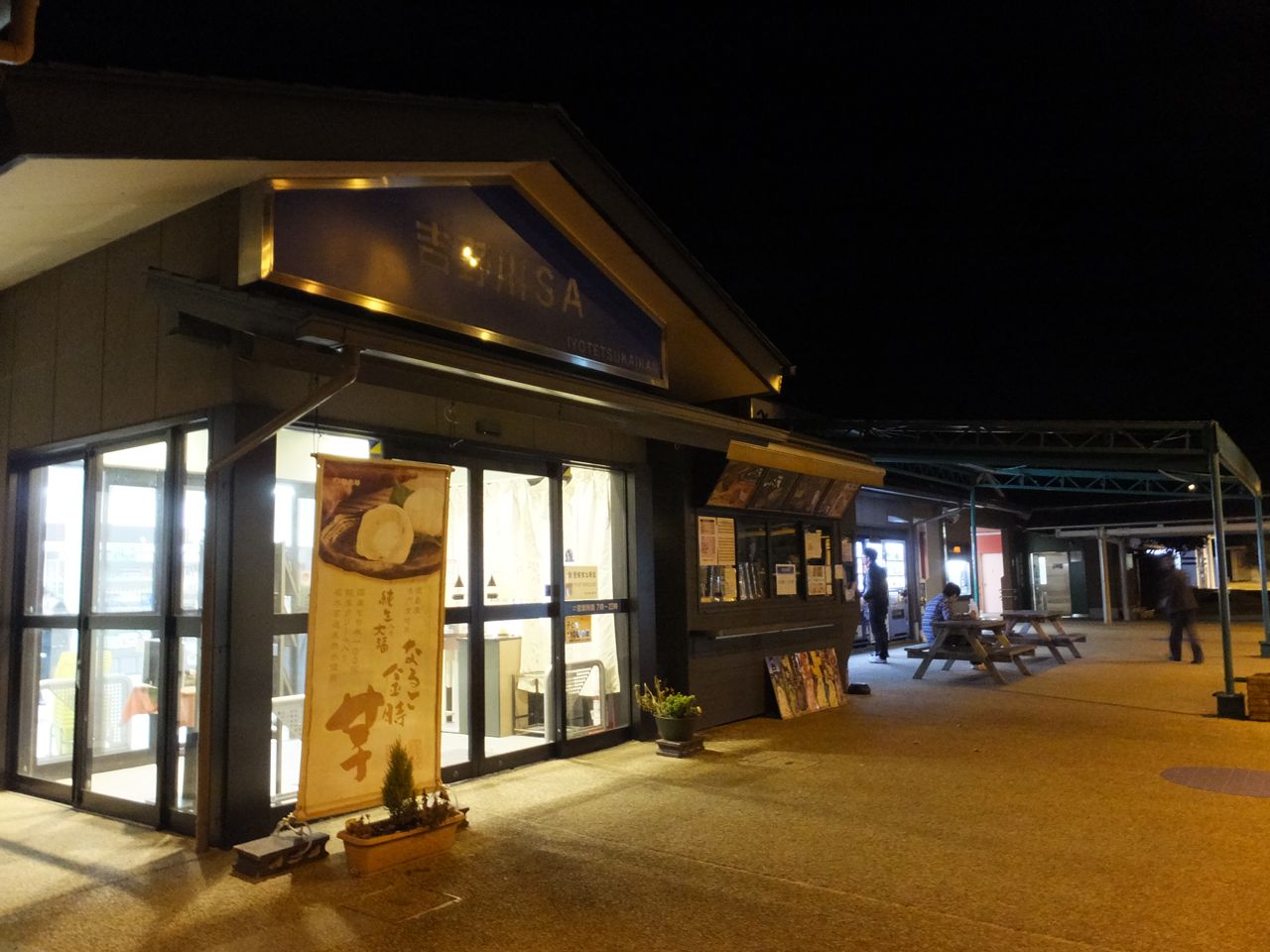 さて、下り線側にはハイウェイオアシスが隣接していて、昼ならば楽しいでしょうが、夜で上り側の、しかも休憩時間ではそちらにまで行くことができず残念。旅籠屋、という宿泊施設もあるようでした。- 旅行時期