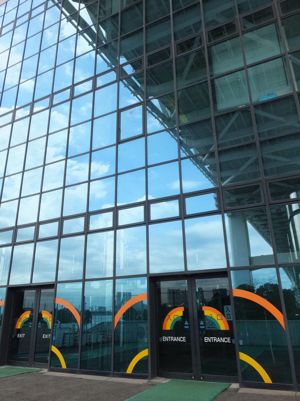 竹芝桟橋は伊豆七島への船の発着場。その建物の前にある半円形の広場です。浜松町駅からますうぐ歩いて10分くらいでしょうか。船に乗る、というにはちょっと小さいターミナルビルに代わって、広場の真ん中の帆船の帆柱の巨大なオブジェが気分を盛り上げてくれます。アーチ状の客船ターミナルの柱列はギリシャの神殿をイメージしたのか、ちょっとだけ装飾的でいいな、と思います。その上に登ればさらにちょっとした広場になっていて、伊豆七島に向かう船を眺めることができます。