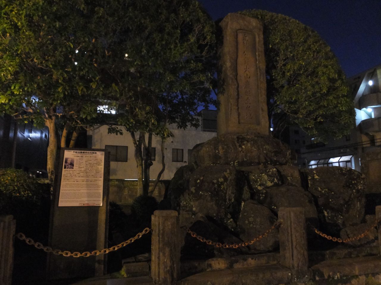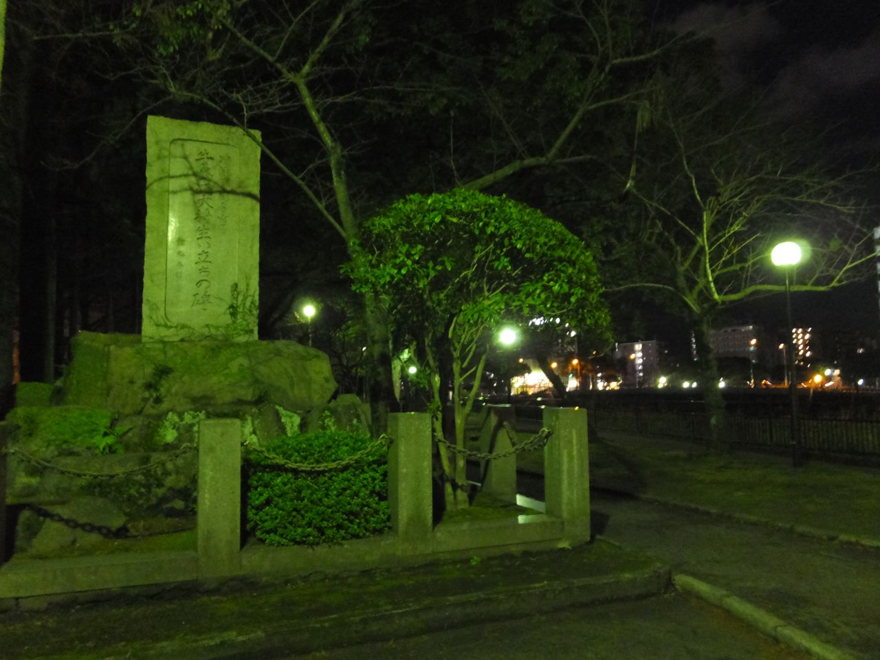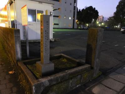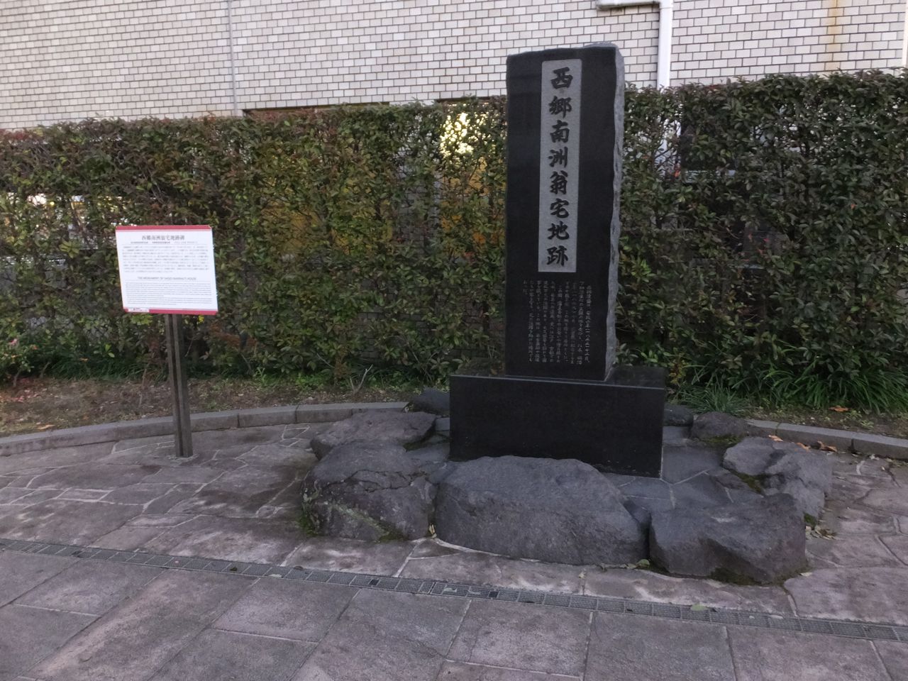 場所は鹿児島中央駅からほど近い共研公園という場所の入口あたりで、石碑がけっこう大きいので目立ちます。生誕の地や終焉の地、それと最初の屋敷の跡は有名ですが、こchらはほとんど知られてません。しかし、西郷隆盛の一番波乱の時期の住んでいた場所なのでもっと有名になってもいいかな、と思います。