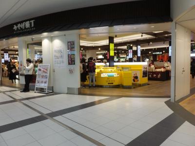 鹿児島中央駅のおみやげもの売り場です。市街側からくると改札口の向こう側になるのでちょっと足を伸ばす感じ。駅前から改札まではアミュプラザというビルなので、観光用のものはないです。そちら側に土産物売り場を造らなかったのは奥の方へ誘導するためかな、と思います。このみやげ横丁の奥は飲食店街です。