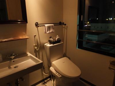 入口は正面から入るといきなりバーのお店の中に。左奥にエレベータがあって2階が小さな窓口のみのフロント。中庭のある外廊下のマンションのようなカタチです。そして部屋には洗い場のある大きなお風呂。トイレは別になっていてなんと外が見える大きな窓付き。(もちろんシェードを降ろして使用)風呂とトイレの間はおおきなガラス窓。びっくりの連続です。