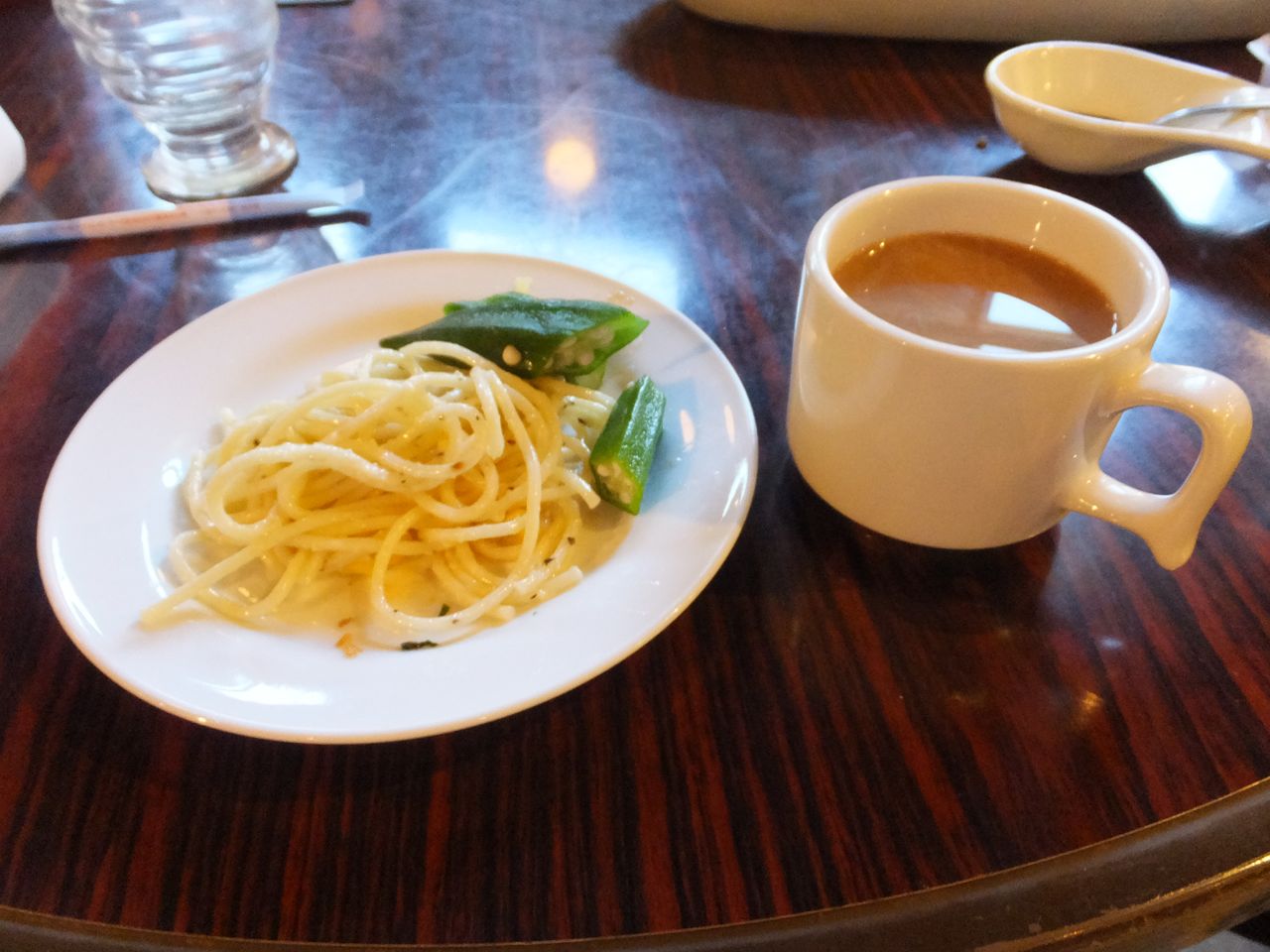目的の標記カレーを注文すると、スープやサラダは食べ放題とのことでこれはいいサービス。