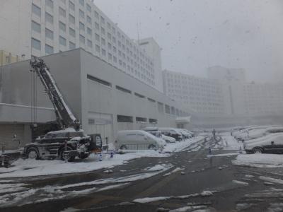 夕刻、吹雪の中越後湯沢からの路線バスはホテルの前に着けてもらえず、スキー場の入口に到着。屋根はあるけどふきっさらしの中を川を渡ってようやくスキー場の建物に中に。そこからは物置のような中を通ってホテルの裏口にようやく到着。なんとも不便です。フロントは細長い建物の遥か彼方。帰りは冬のみ運行の急行バスでホテルの前に着けてくれるのですが一旦市街地に出てぐるっとまわって10分かかって前日のスキー場の前に到着。普通にホテル内の敷地を走れば1分かからないでしょうに。なんとも理不尽なバスアクセスです。無料の送迎バスもあるけど、予約のために30分前から並ぶ必要アリ、とか不便そのものでした。