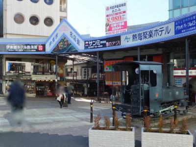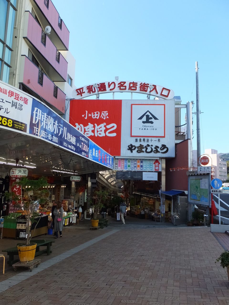 熱海駅の右側が市街になっていて、2本の商店街が伸びています。駅前広場の海側から伸びるのがこの仲見世商店街です。幅も広く、アーケードもあって立派な商店街で、朝9時ころにはお土産物屋さんも多く営業していて活気がありました。まだまだ熱海も大きな温泉街だなあ、と実感できます。電車の乗継ぎの待ち時間に駅前の足湯に入り、この商店街を歩けば、手軽な観光としてもいいと思います。