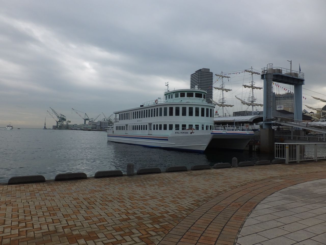 神戸ベイクルーズは2隻あって、プリンスとプリンセス。プリンスはやや小型ですが帆船を模しているので大きく見えます。プリンセスは大型で海外のリバークルーズのような優美な外観。