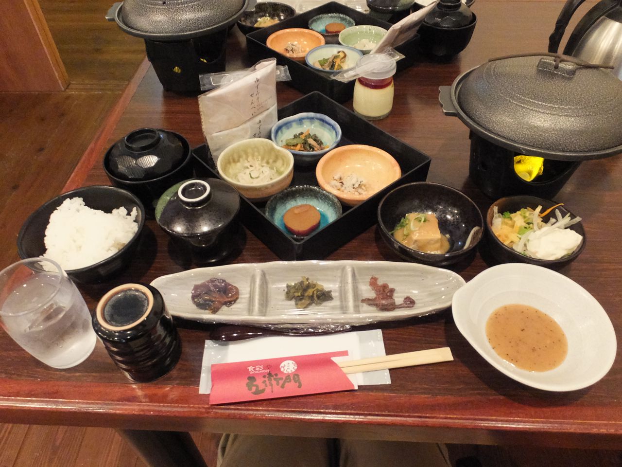 さて、本題。この「食彩や五衛門(本館)」。団体の食事用に最近造ったと思われます。「ゆふいん菓子工房五衛門」の裏にあって、菓子工房の中を通り抜けていく感じ。階段を降りてドアを開けたらいくつかの大部屋に分かれた感じ。飲み物はマシンから各自飲み放題。セットメニューでしたが美味しかったです。そして部屋がいくつかに仕切られているので騒がしさもなく。