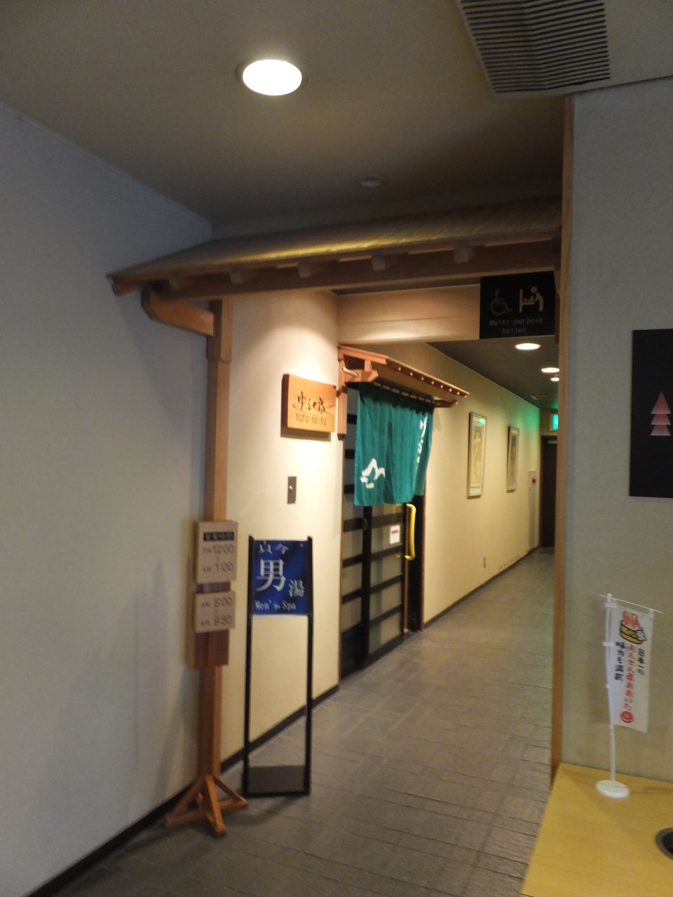 日帰り入浴です。1130からなのでロビーでゆったり。エレベータで上へ。建物の4階の奥が温泉でした。館内はいかにもやや大きなホテル、と言う感じで高級感はないですが、気持ちのいい調度です。