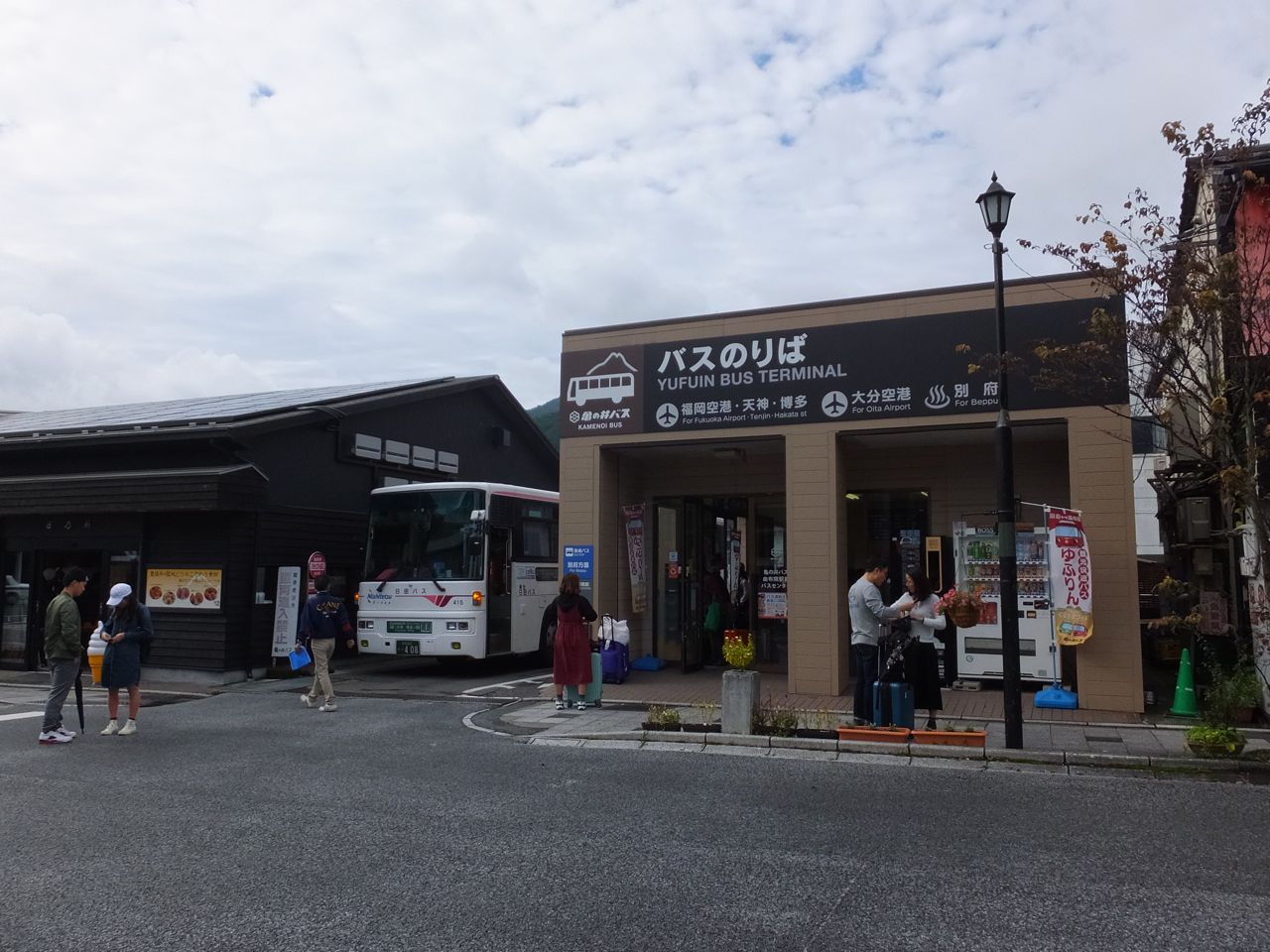 由布院の駅前にあります。が、駅の大きさに比べてこのバスタ^見鳴るは本当にこじんまりというか、道を歩いていると見落としそうです。小さな(きれいですが)平屋の建物がそれで、となりにある駐車場への入口のような道がバスのりば。細い通りから大きな観光バスがにゅっと出てきます。