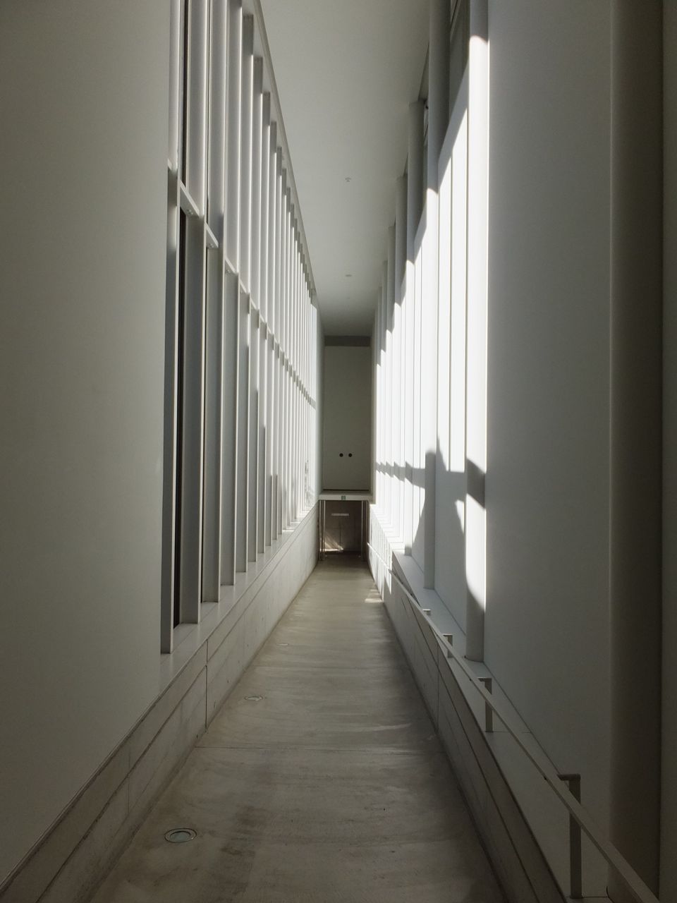 旅館のやや下にこのアルテジオがありました。奥の駐車場から降りるとコンクリート打ちっぱなしのすっきりした建物。そして光を生かした廊下の奥にミュージアムとチョコレートショップとカフェの入口が。