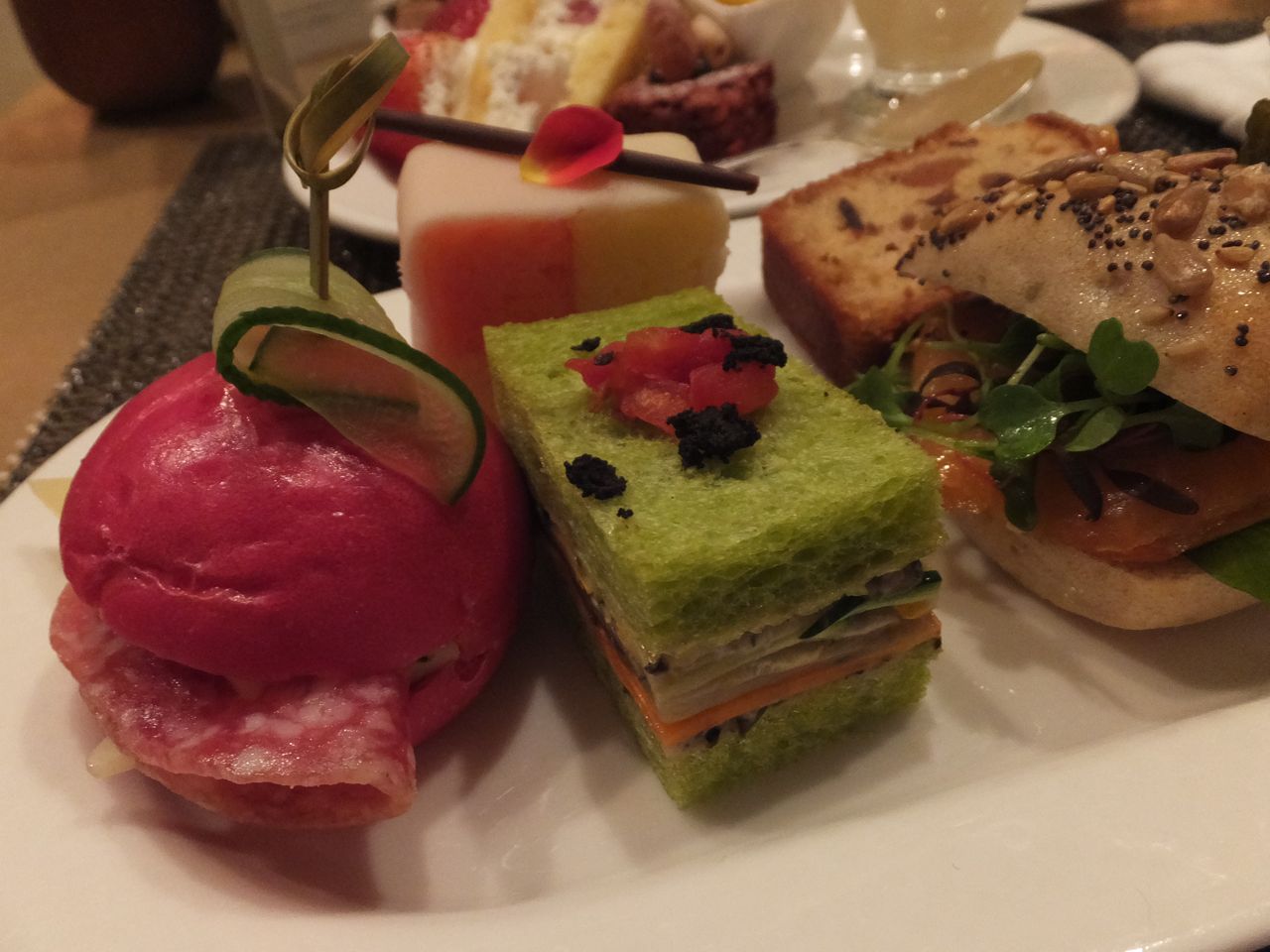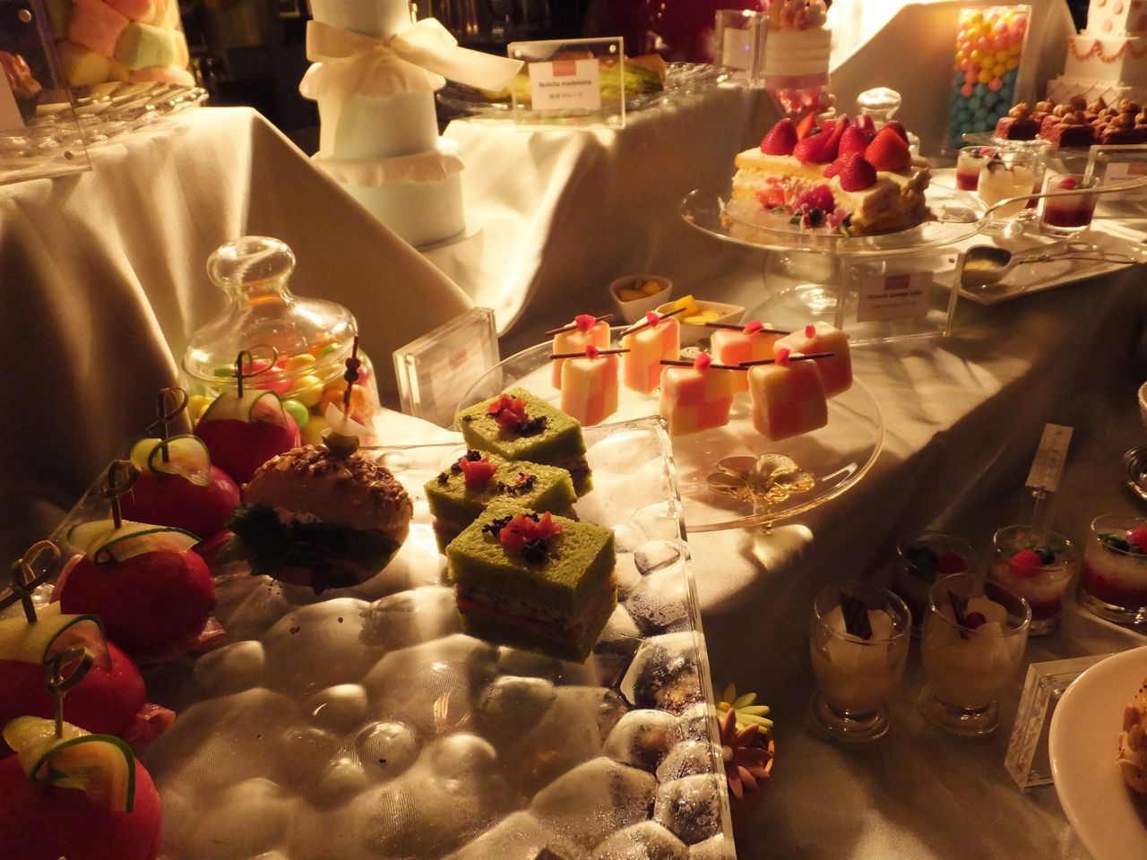 最高級ホテルのひとつだけあって、それはそれはすばらしいデザートブッフェでした。生ケーキはわずかに2種類、あとはサンドウィッチと半生ケーキと焼き菓子系のみ。でもその生ケーキが美味しくて、その他も本当に美味しくて。ブッフェ台もすばらしくきれいな盛りつけ・ライティングでした。そしてあっという間に制限の90分。