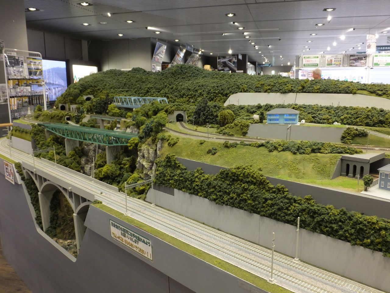 ありとあらゆる同社の製品が販売、また、ジオラマが設置。びゅんびゅん模型が走り回ってます。