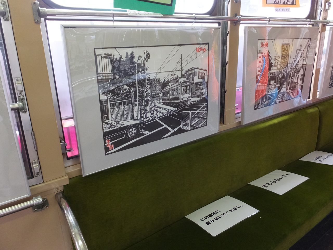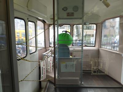 中に入ることができました。片方はPCCカーという古い電車で当時は先進的な電車を造っていたアメリカの技術で造られた高性能車。乗車すると歩くだけで電車がふわふわ揺れるのが印象的。そして室内の天井灯がカバー付きの天井全長にわたる蛍光灯の密度に驚き。