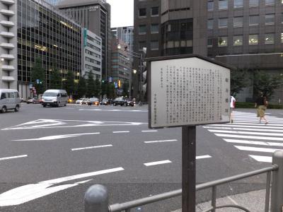 このあたりが江戸城の外堀だったころ、ここに鍛冶橋という橋がかかっていた、というだけのことですが、周囲に遺構らしきものはまったくなく、ぽつんと看板が建っているだけです。向こうには新幹線が走り、手前は高速バスの乗り場の鍛冶橋駐車場。戦後すぐまで外堀はあったそうなのですが、この景色から当時の江戸城のお堀の景色を思い浮かべるのは困難です。看板にお堀の場所と橋の現在の図解が書いてあるといいのになあ、と感じました。