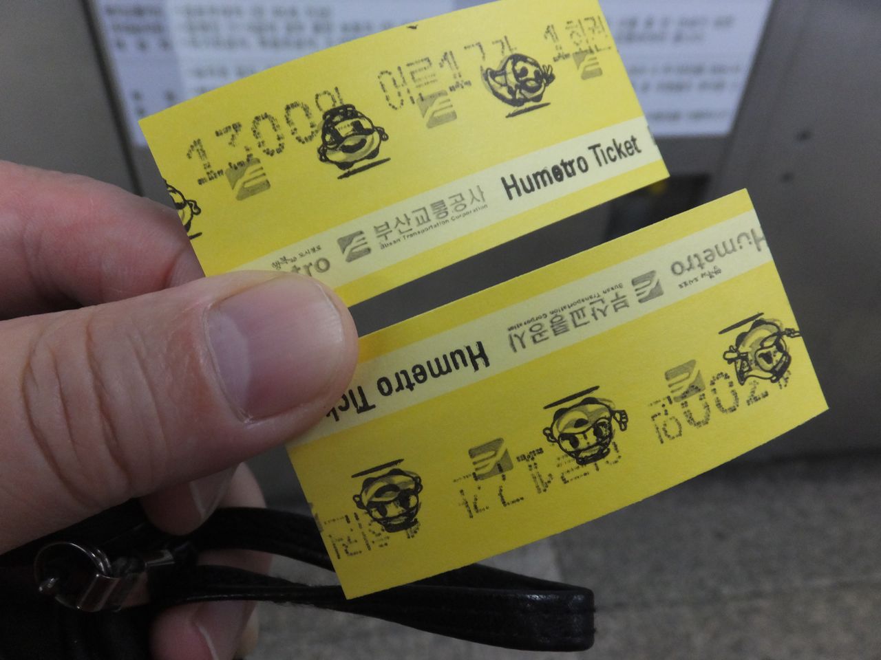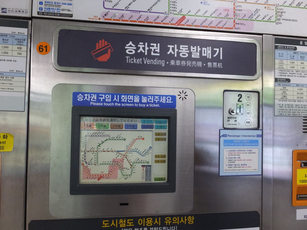 歩いてもいいけど、地下鉄も乗ってみたい、という程度のチャガルチから釜山中央駅までの2区間の乗車。