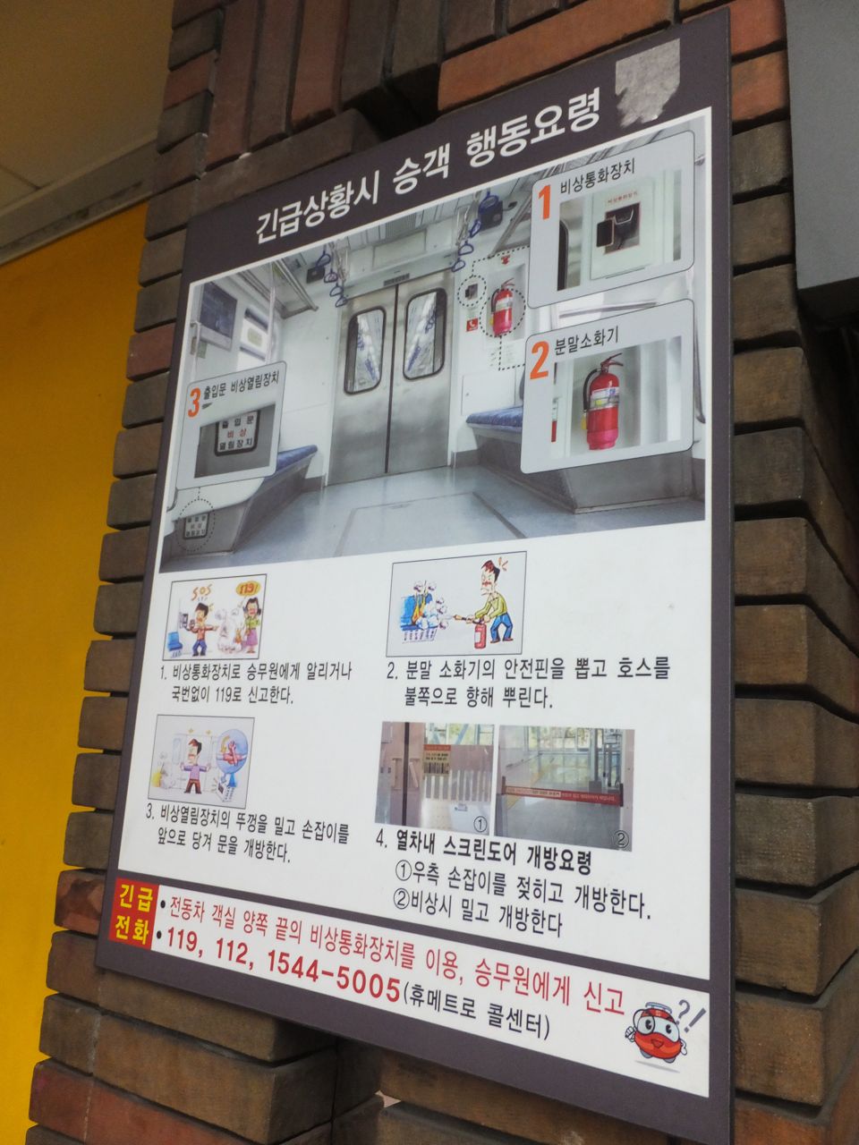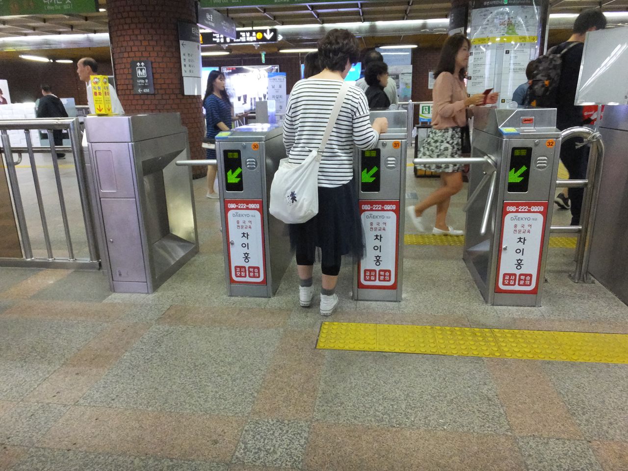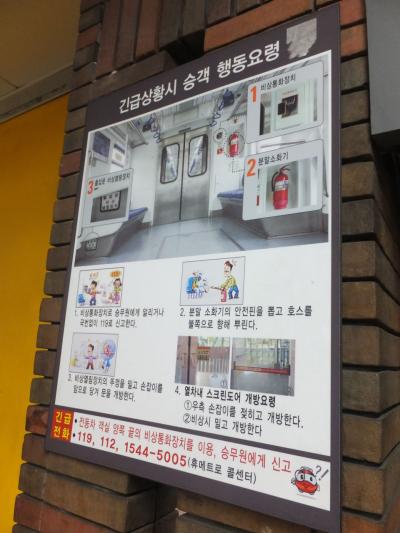 乗車券の自動販売機は日本語表示に切り替えることもできるので簡単に購入できます。改札も自動改札。機械は古そうでターンスタイル(日本の戦前の方式)であまり大量に人が通るのは難しく、朝ラッシュ時など大丈夫かな?という感じ。ホームドアがあります。ホームは広く、これはうらやましい限り。電車も日本とほぼ同じ。これは韓国のソウルの最初の地下鉄も日本製でそこから発展したからでしょうか。