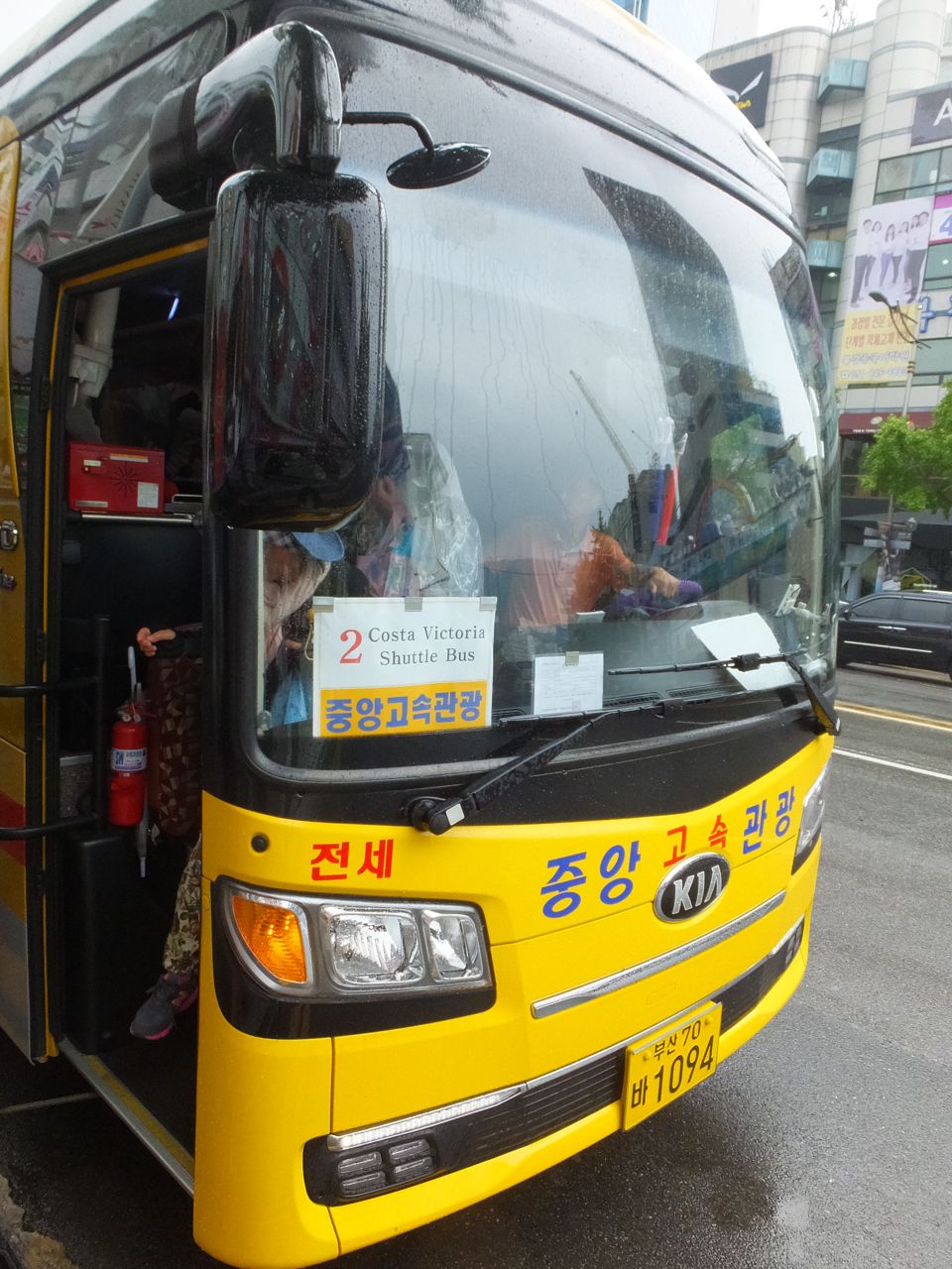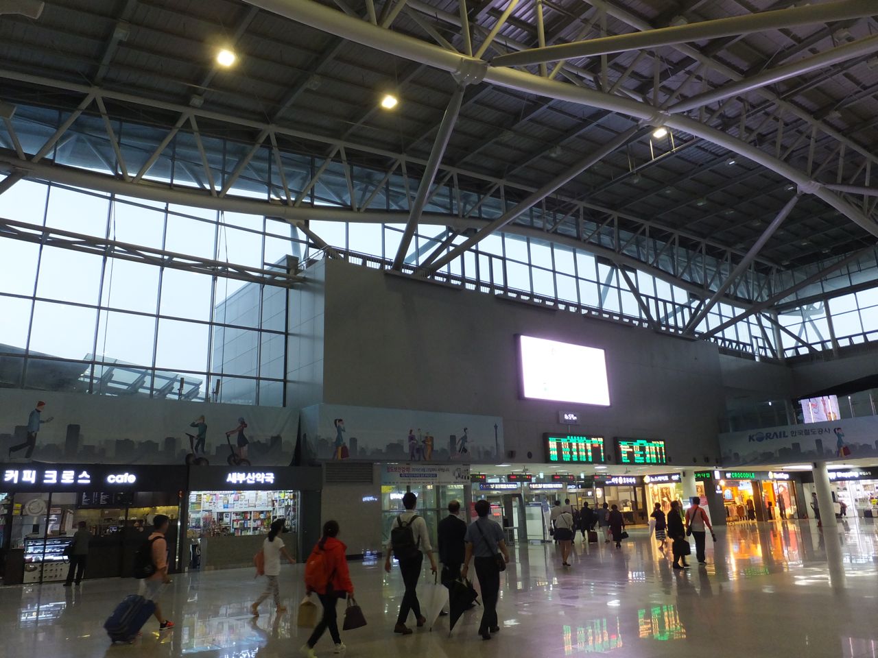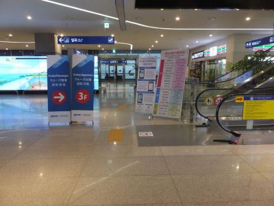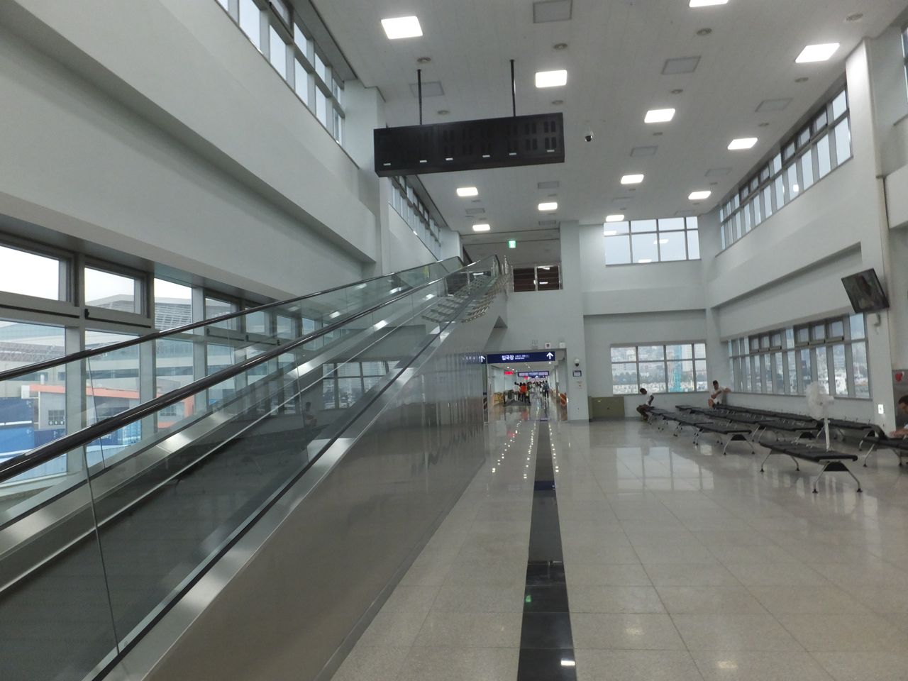 どでかいターミナルです。船を降りてからターミナルビルまで歩いて5分以上かかります。ターミナルビルでは両替や案内所は探すまでもなく見つかりました。出口への経路もすぐわかりました。クルーズ客を便利に誘導するようにはできています。街までの無料バスもありましたが、座席が全部埋まると乗車できないので、乗れれば便利、という程度。なお釜山駅の裏口まで歩いて10分くらいです。- 旅行時期