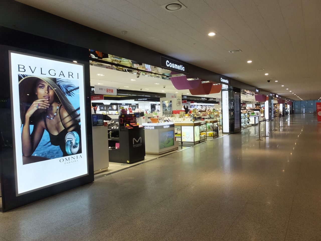 クルーズ船の寄港です。新しい国際船ターミナルにも免税店街がありました。が、夕方でこの船以外のお客さんは通らないので、お店にお客さんはほとんどなかったです。やや高級品が多く、韓国に来る人はそのような物を求めてない、ということもあるのかもしれません。街中で安いところが多いのでしょう。とくに免税であることを目的にして買うのであれば釜山到着時に値段をチェックして街中で似たものを探して比較してみるのも面白いと思いました。