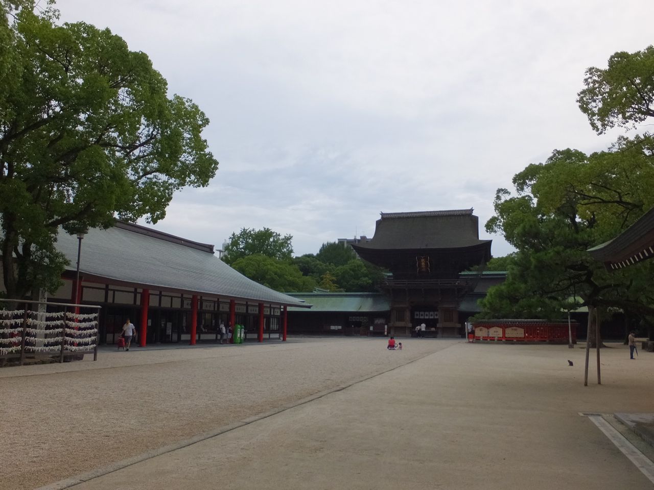筥崎宮は海から鳥居が4本ありますがその一番筥崎宮寄りなので一の鳥居です。海に向かって4種4本の鳥居の眺めは見事です。境内から振り返ってみましょう。- 旅行時期