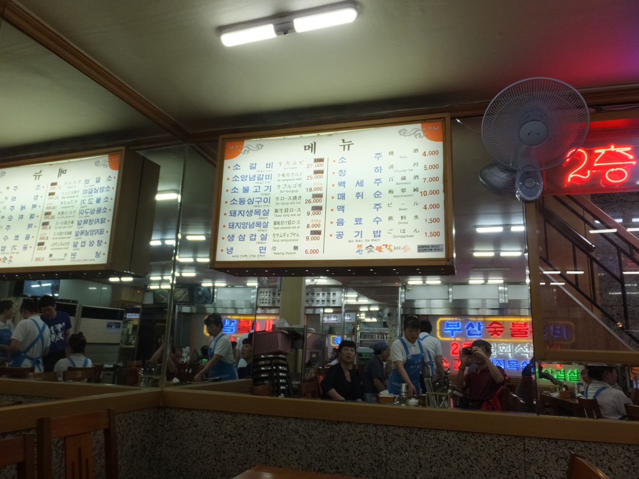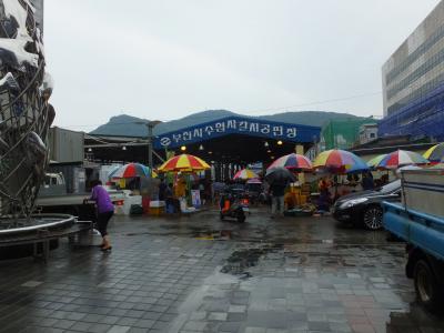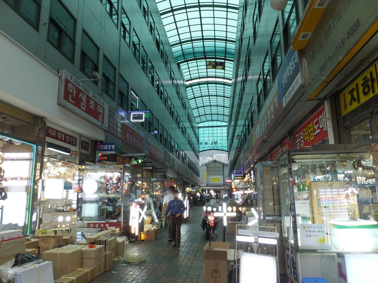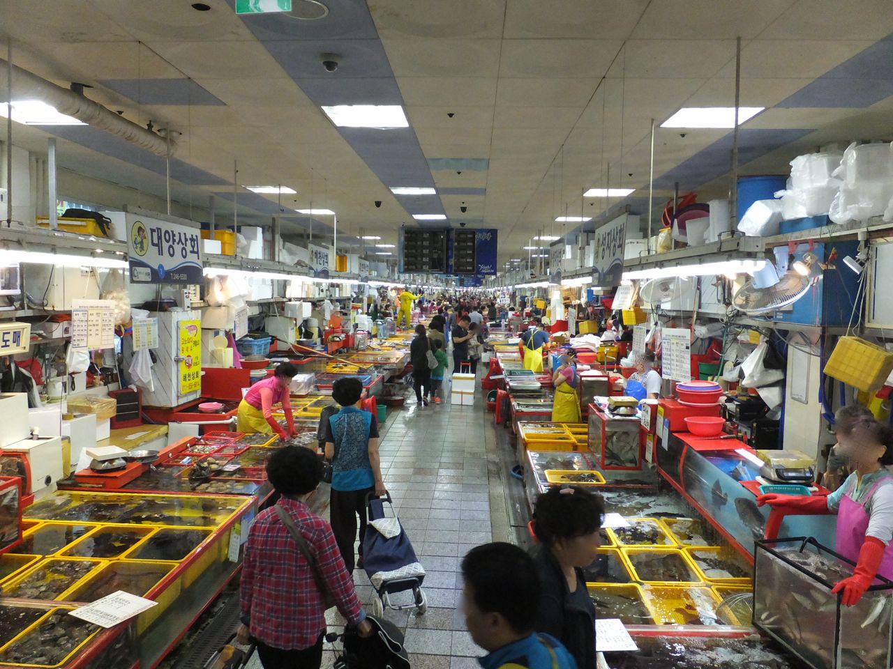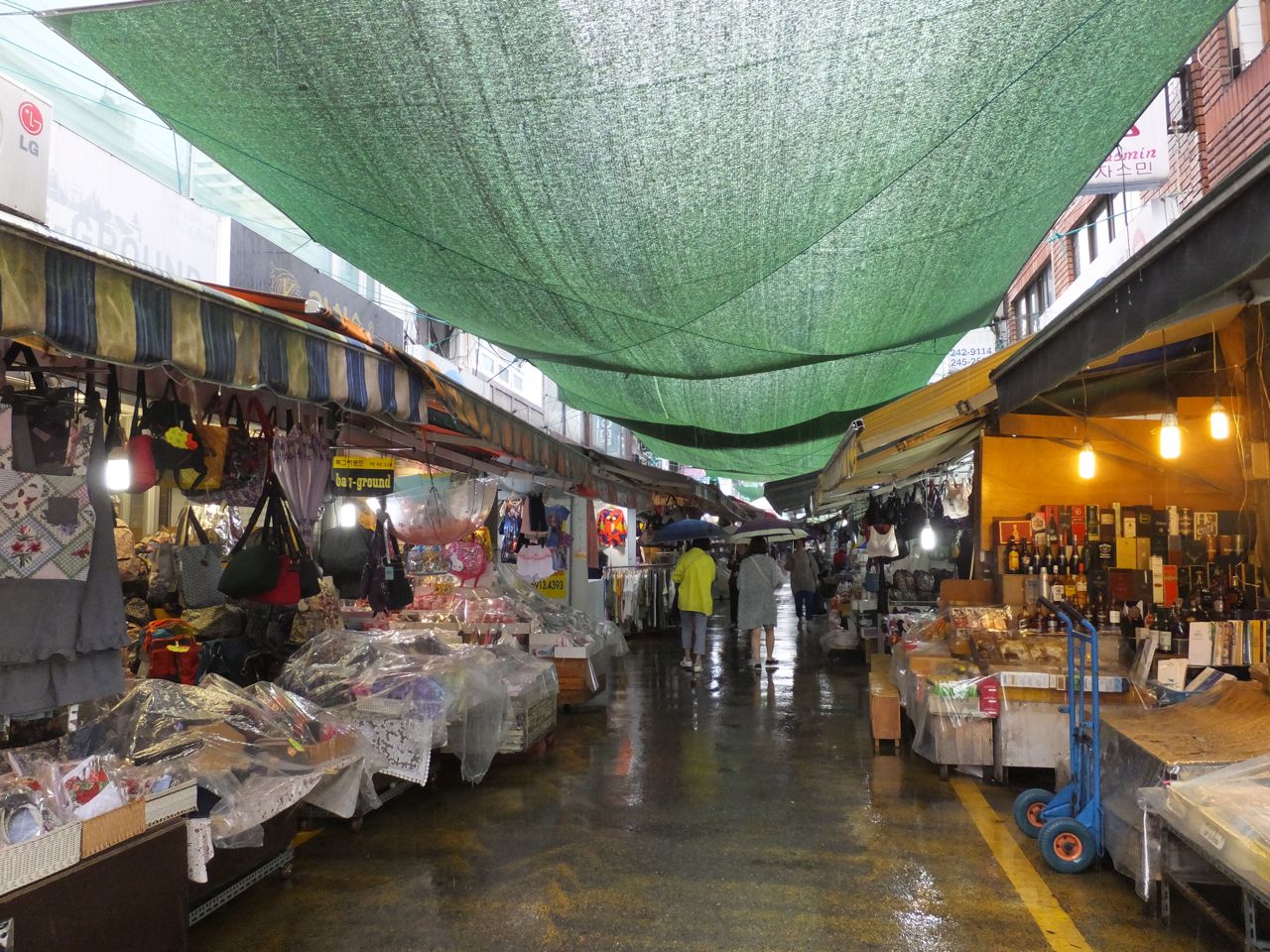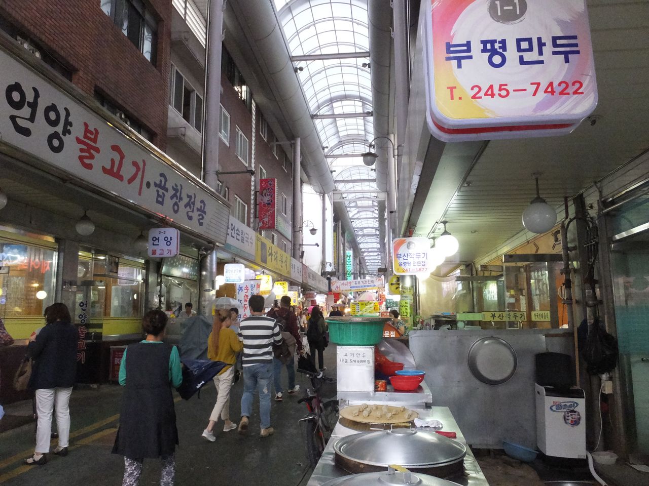 ガイド本によっては国際市場の中のさらに小さな市場となっていたり、大通りを挟んで西がこの富平市場で東が国際市場だったりわかりにくいのですが、そのような区分けはともかく、大通りの西側の食べ物屋の密集地ということです。南側の一部は露天でしたが、アーケードになっていて雨の日も安心。ただ通りが狭くお店が張り出してきているので歩くのが(すれちがうのが)けっこう大変。雑然としたお店の食べ歩きや見物には面白い場所だと思います。