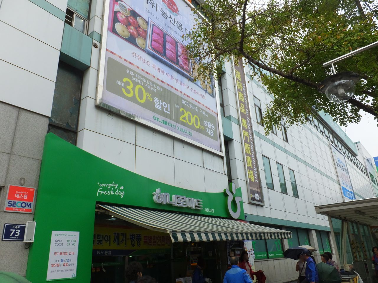 チャガルチ市場の出口からも国際市場の出口からも近い場所にあって便利。外観も緑色の看板が目立つビルなので簡単に見つかります。ここでは乾物の韓国海苔を購入。国際市場のいろんな店と比べてちょっと安かったので。もちろんスーパーなのであらゆる食品があります。ただケーキはあまり美味しそうなものではありませんでした。