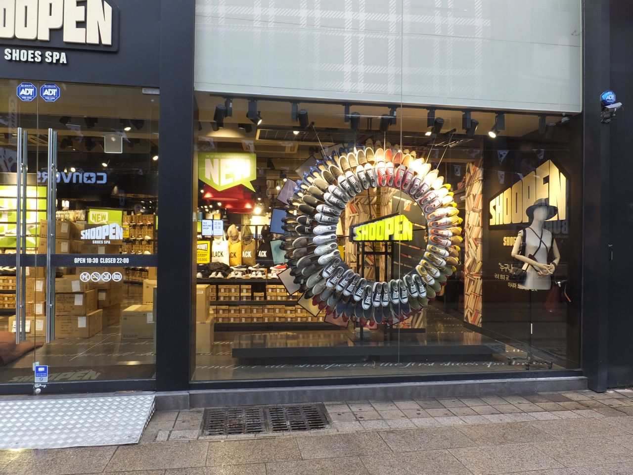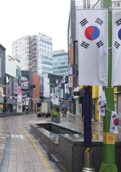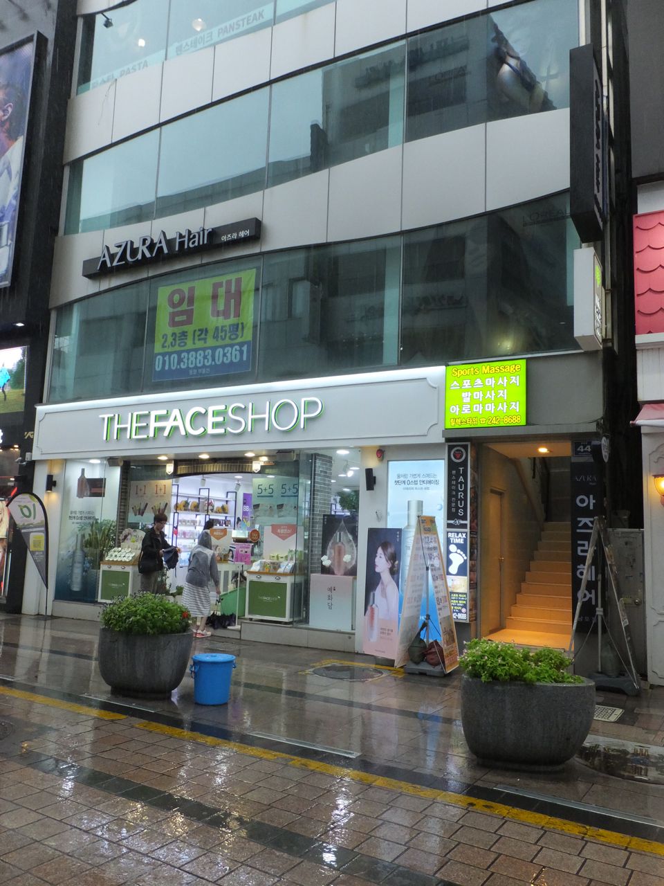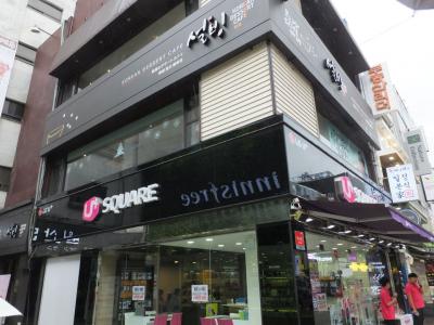 韓国は化粧品が有名なのだそうで、妻のお供です。ずいぶん迷って買い物中、店内を観察。安いなあ、と思ったのはマスクでした。日本人以外でもマスクを使う習慣があったのか、とちょっと意外。けっこう日本人客も多く、次々に。日本人も安心して入れるお店のようでした。
