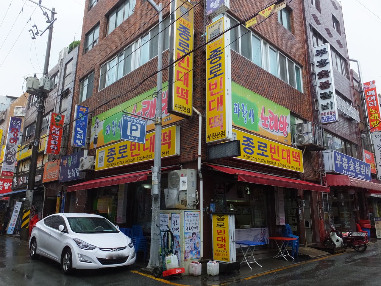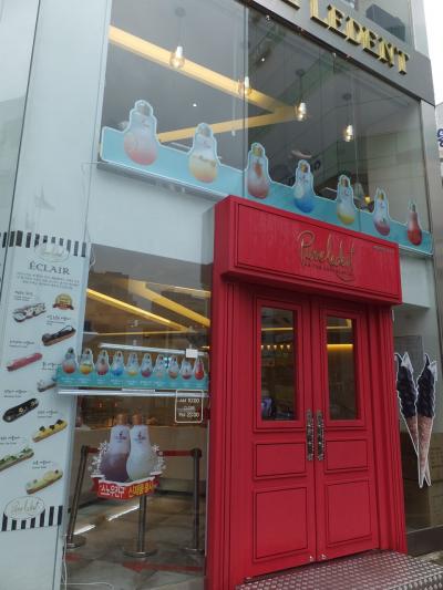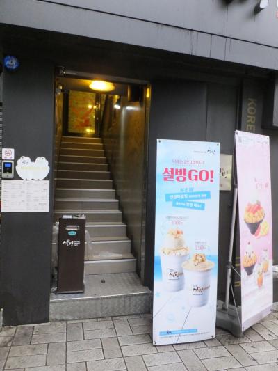 釜山の街歩きのちょっと休憩に入店。9月で寒い雨でしたが、やはり名物は食べないと、といった感じの日でした。光復路に面した交差点のすぐ近くのきれいな黒いビルで場所はわかりやすいです。『韓国のデザートカフェ」という文字もありました。2階なので細い階段を登ります。そこが入口です。