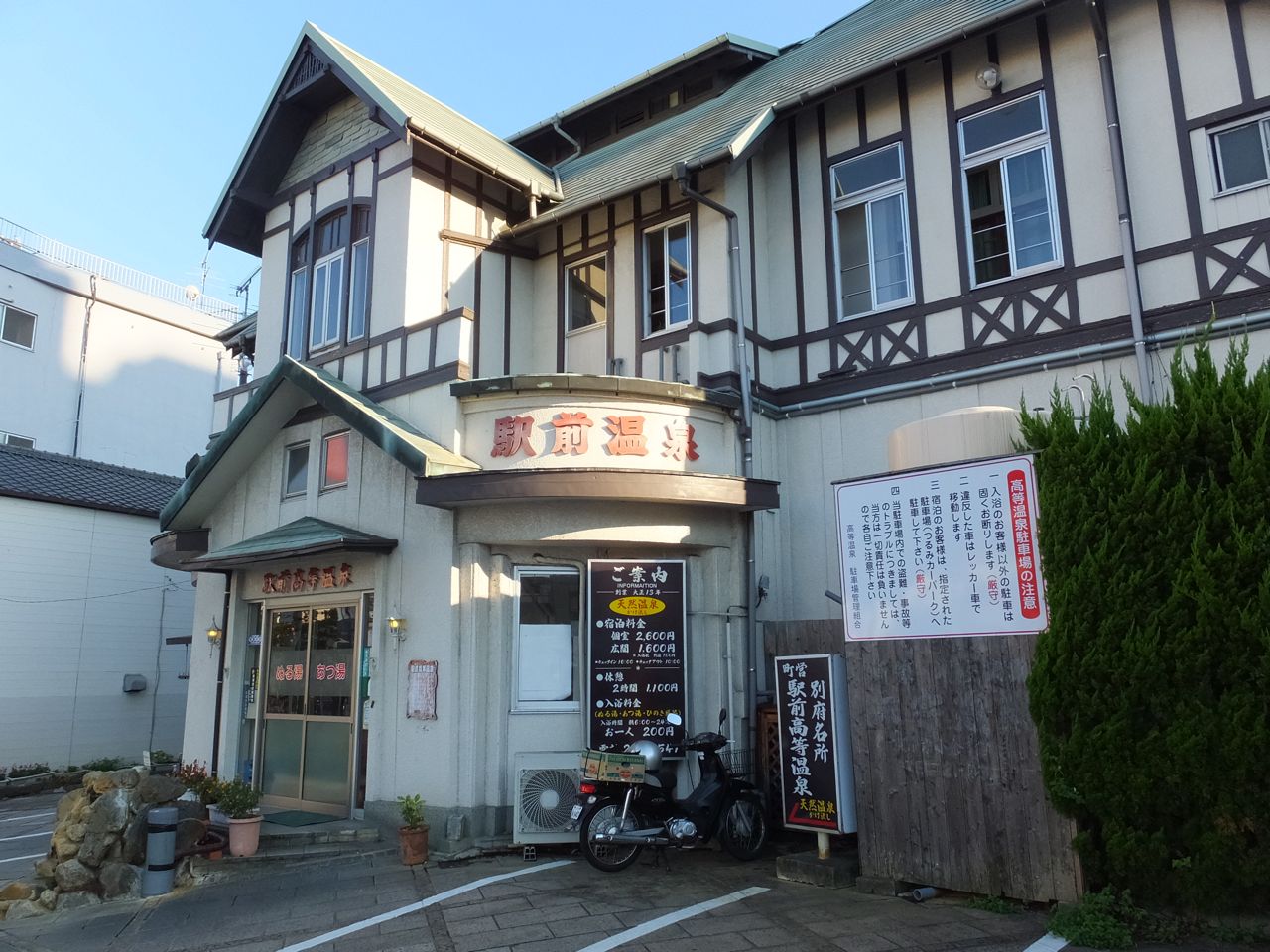 別府駅から歩いて2分。そんな駅前に温泉の外湯があります。高等といっても建設時はこの建物が立派だ、というだけのことかもしれません。建物の前に手湯があって湧き出すお湯に触れることができます。