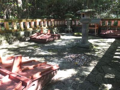 「御霊水」。井戸が3つあります。中の水はあまりきれいではなさそうでしたが、儀式に使われるようです。