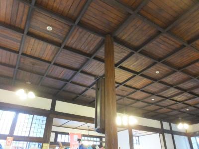 さて、温泉の建物の見学の観光客は多いのですが、案外入湯しようとする人は少なく、あまり大きくない湯船ですが、10人くらいいなくて拍子抜け。なお、お風呂から見えるところに脱衣場の籠があって湯船から見えるのでまあ、相当の貴重品を持ってないかぎりは目がとどくので大丈夫かなあ、という気もしました。