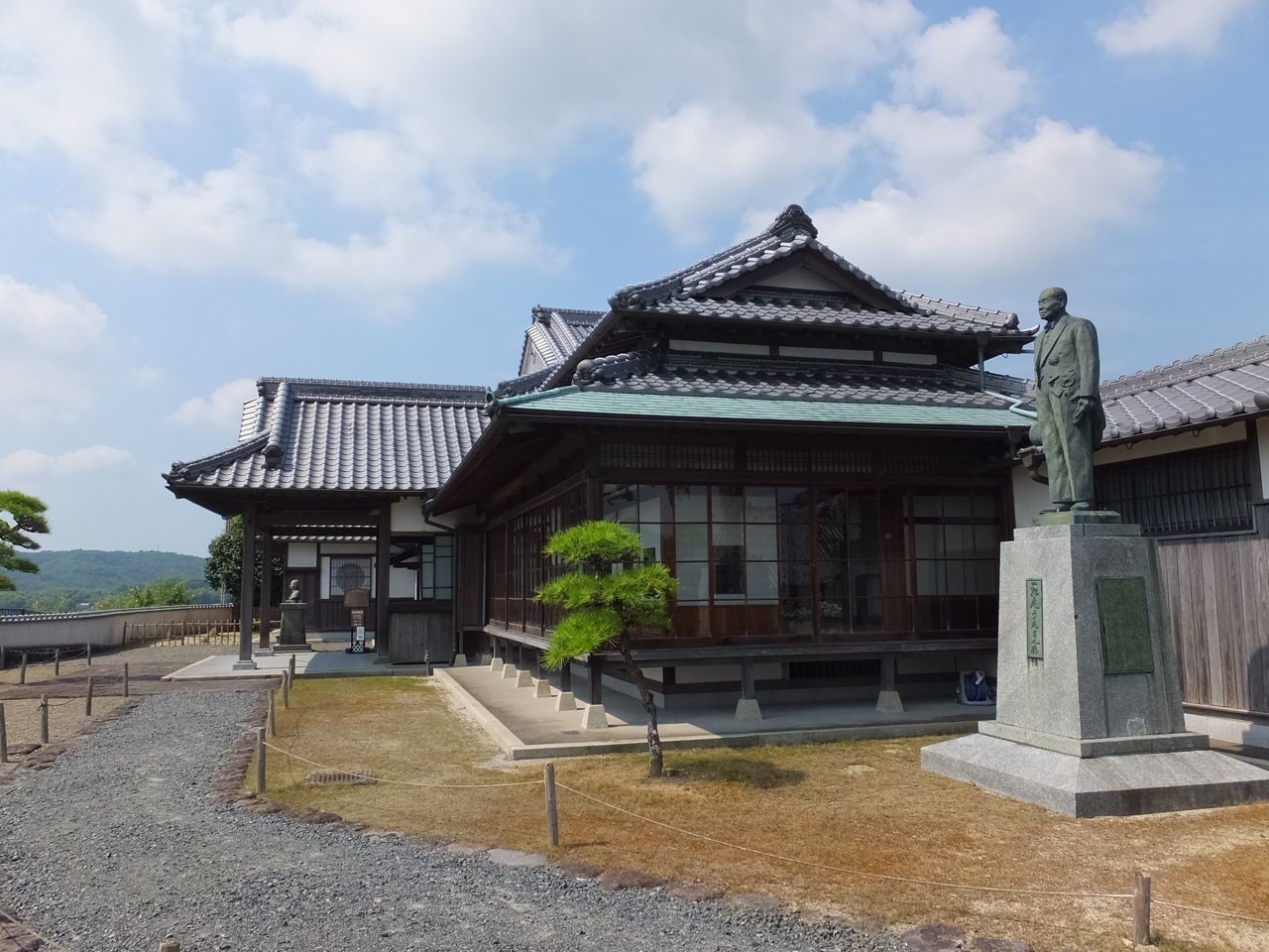 正面にその「一松定吉」氏の銅像が建っています。氏の死後、杵築市に寄贈され、公民館的な使い方をされていたのを、その後杵築の町の一番見晴らしのいい場所に移築したのだそうです。