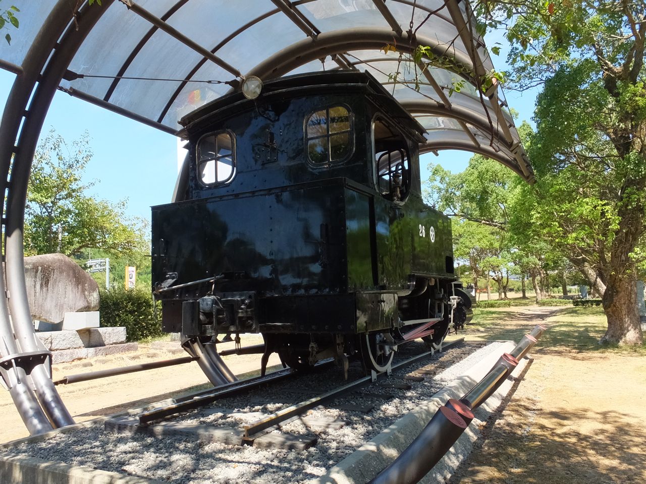宇佐神宮の参道の脇に鎮座している古い小さな蒸気機関車。ドイツ製の明治時代に輸入された機関車で、国鉄(当時は九州鉄道)で働いたあと、宇佐神宮まで線路のあった大分交通宇佐参宮線で運転された機関車です。もう廃止になってから50年以上たつようです。こんなかわいい機関車で運転していたんですね。