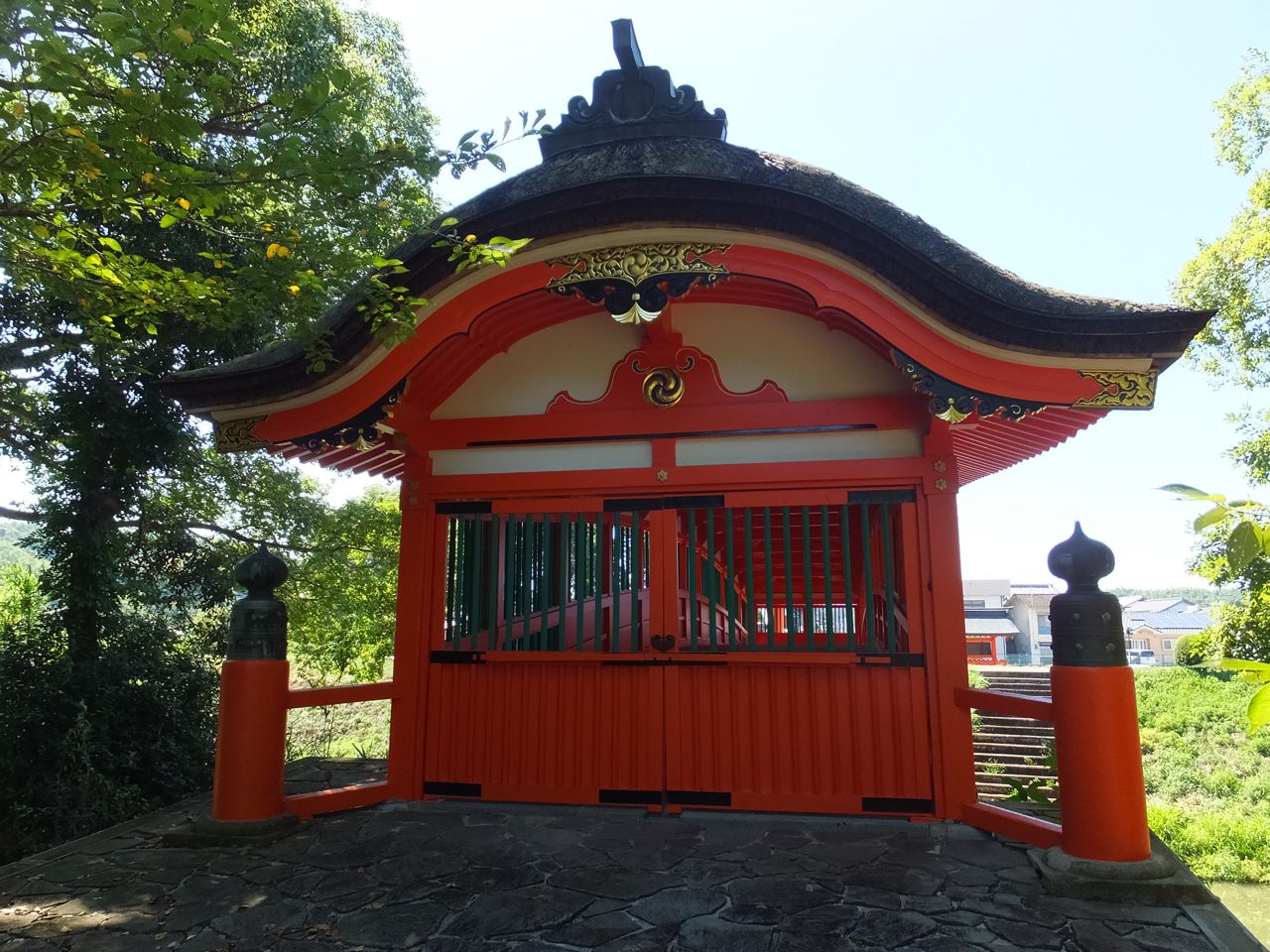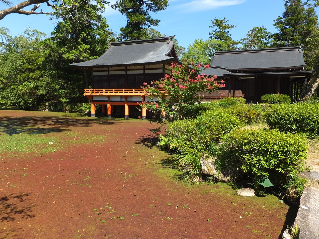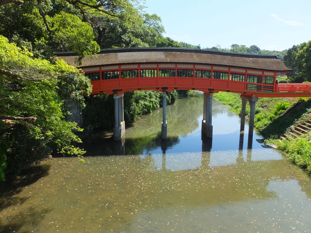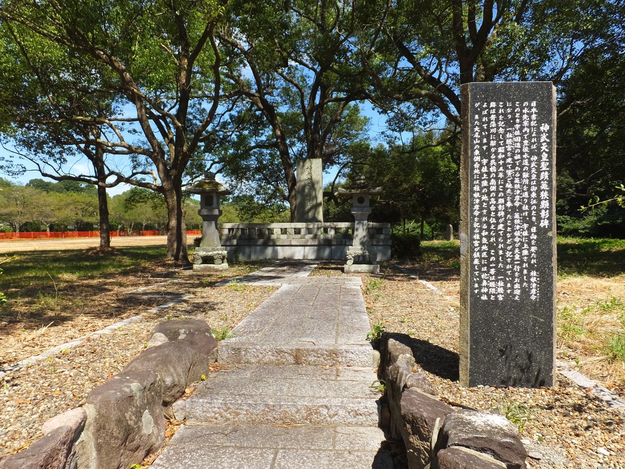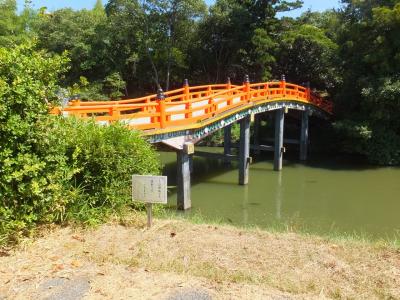 宇佐神宮は神武天皇の東征の際に訪れた場所のひとつで、参道の入口にも「聖蹟の顕彰碑」が建っています。そこにはこのあたりで仮の宮を建てて留まった、とあり、その場所は宇佐神宮の中の呉橋のあたり、と書いてありました。呉橋は参道をかなり行ってから右にこれまたかなり行ったところです。訪問してみるとたしかに1本の標柱が建っていました。まあ、それだけのことですが、ちょっとうれしいことでした。