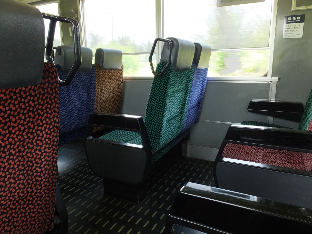 各駅停車は日田までは2両か1両。すれ違った列車は全部クロスシート。それも転換クロスがほとんどでした。土曜にもかかわらずまあまあ空いていました。日田から天ケ瀬はボックスシート。空いていました。