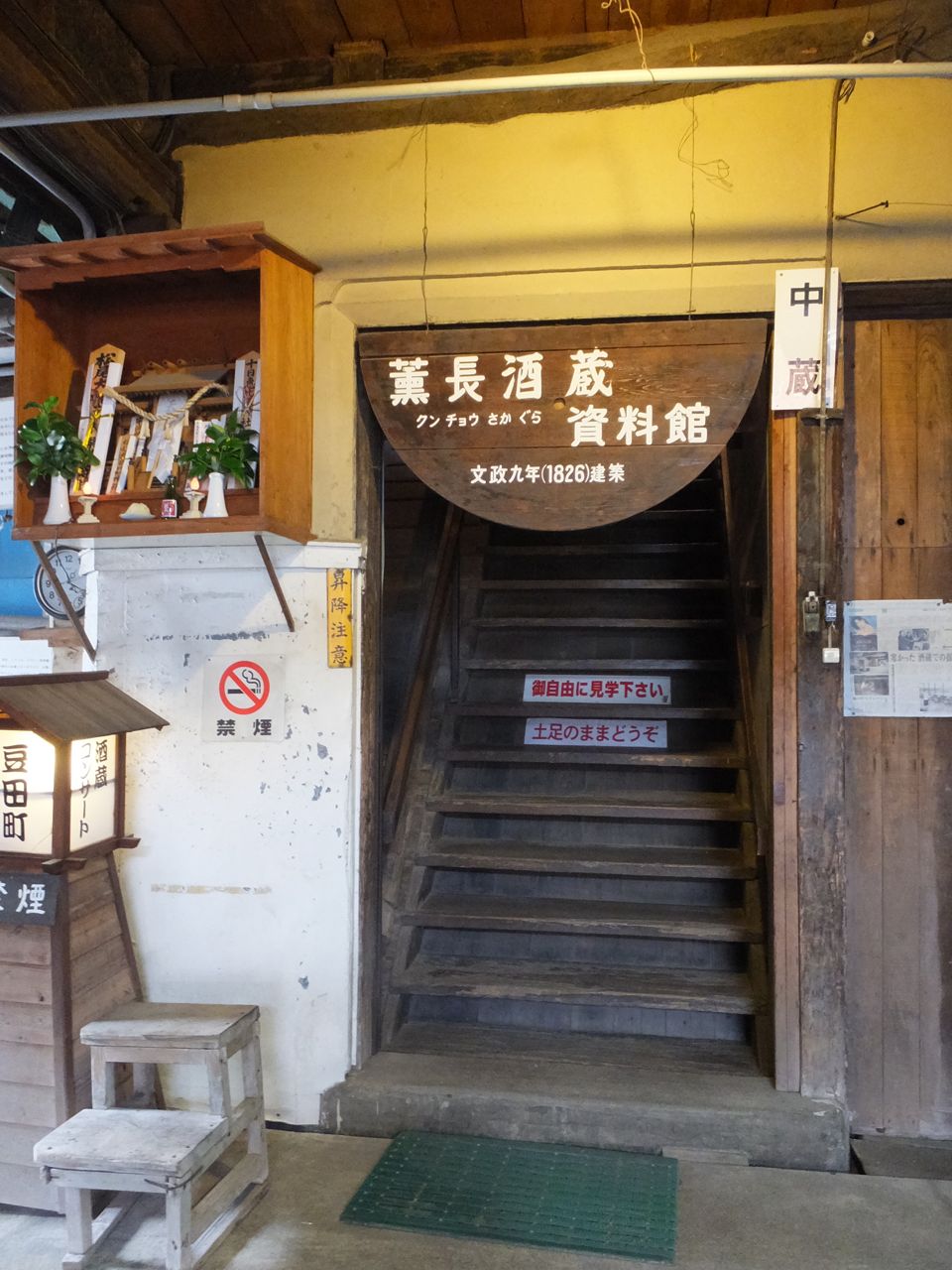 酒造会社の資料館で、お店の奥から入りますが、いきなり急角度の階段、それも屋根裏に続くまさに秘密の階段の雰囲気。薄暗い木組の天井とのすきまのような高さですが広い屋根裏に処狭しと酒造の用具の展示がされています。その展示内容はとくに気を引きませんでしたが、この屋根裏の雰囲気の方がすばらしいです。でひ上がってみましょう。なお、降りたあとはショップとその横にあるお酒の作り方のような普通の展示室もありますので、ぜひそちらも。