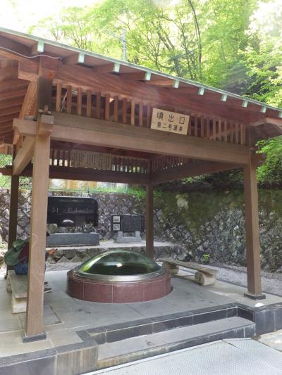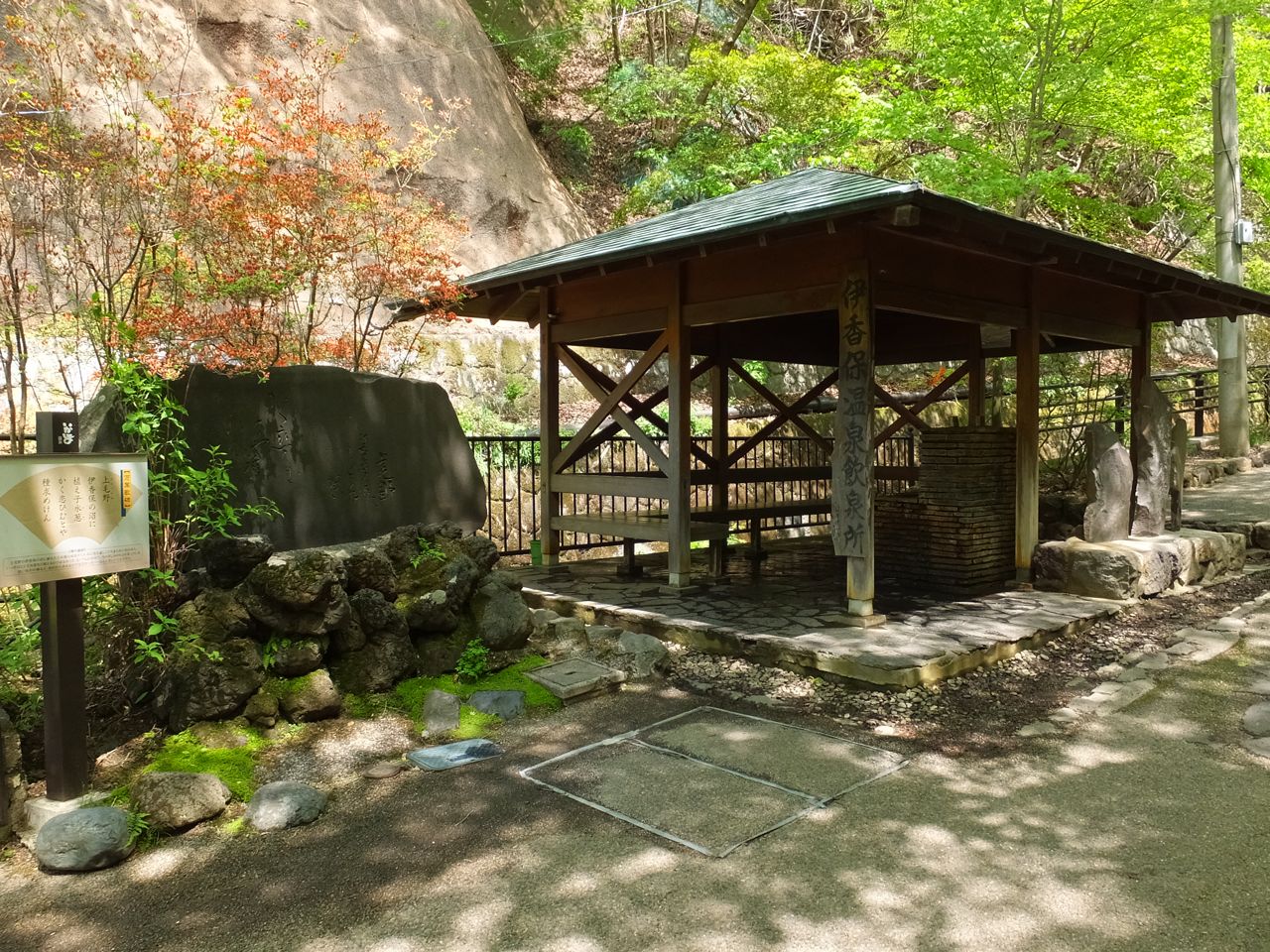 伊香保温泉は織田信長と武田勝頼の戦いのあとの開湯と聞いていたのですが、その前からあった、第一号の温泉宿の跡なのだそうです。いわば一般的に知られている石段街が織田信長の時代で、その前は、この源泉のあたりに温泉街があった、ということのようです。