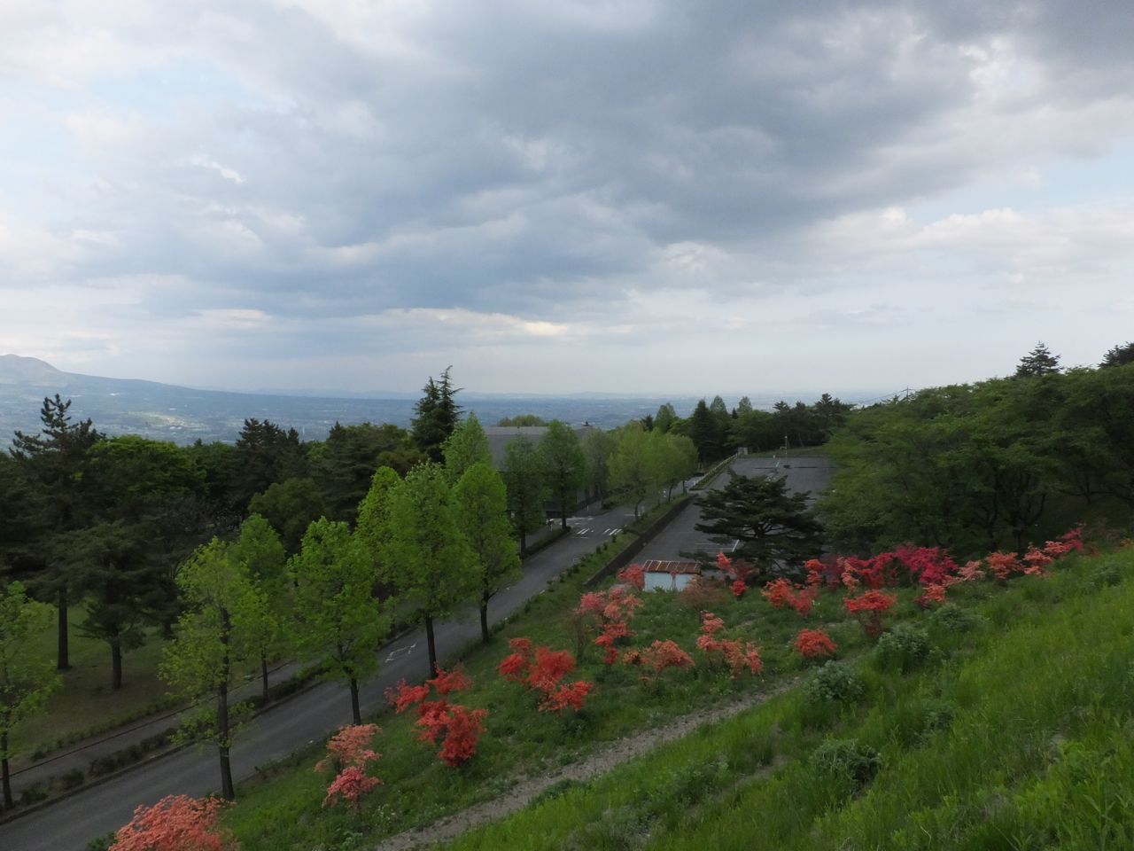 公園自体は道路からやや下に降りたところにまとめてグラウンドなどがあるのですが、道路から側道があって一番の眺めのいいところに展望台があるのです。ここからの眺めは最高で、正面に赤城山、右遠方に高崎か前橋の市街地が見渡せます。関東平野の北辺から彼方まで見渡せるので、とくに夜景はきれいなのではないかと思います。