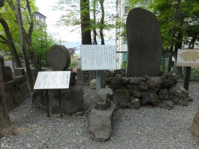 伊香保神社は伊香保温泉街の最上段。境内にはここにきたぞ、という記念であるかのように数個の石碑があり、この芭蕉の句碑もそのひとつ。ただ、芭蕉の句は表で、うらには別の俳人の句が刻まれています。
