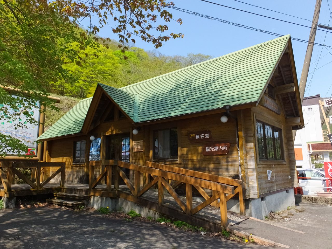 最もきれいに見えるのは竹久夢二の歌碑のあたり。観光案内所とトイレと駐車場があるので、止まって湖岸で見てみましょう。
