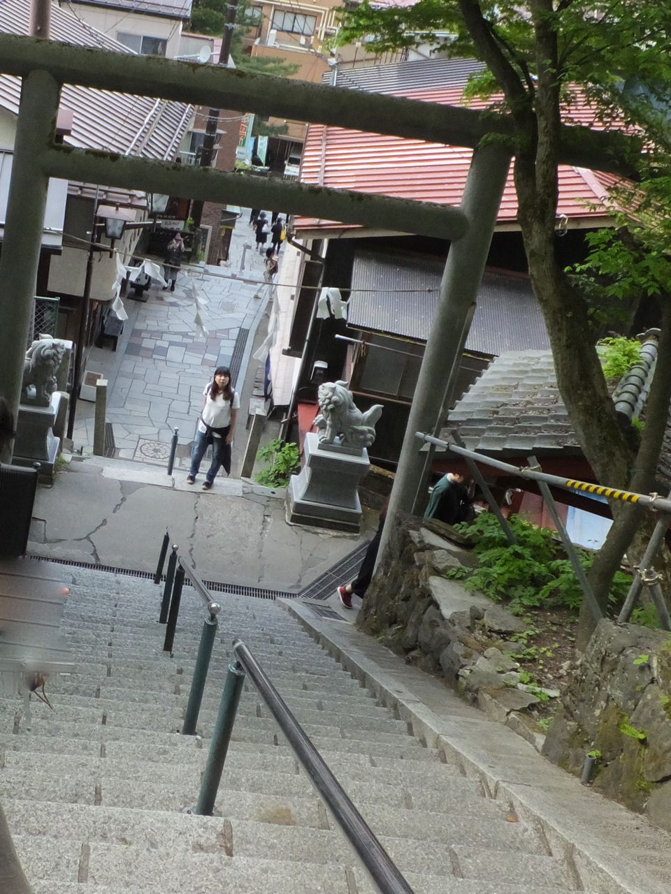 坂道の温泉街を象徴するほぼ一直線の階段。