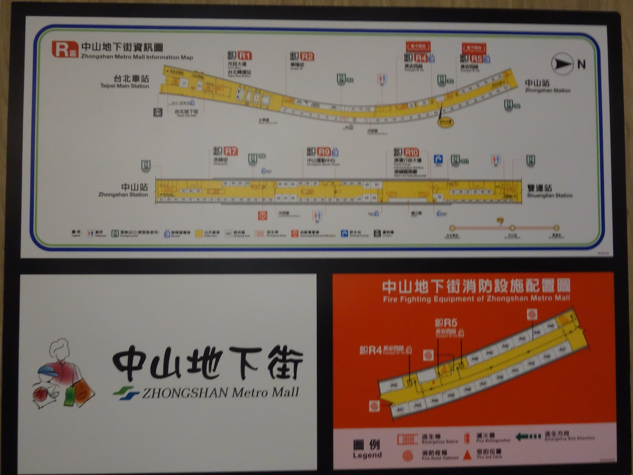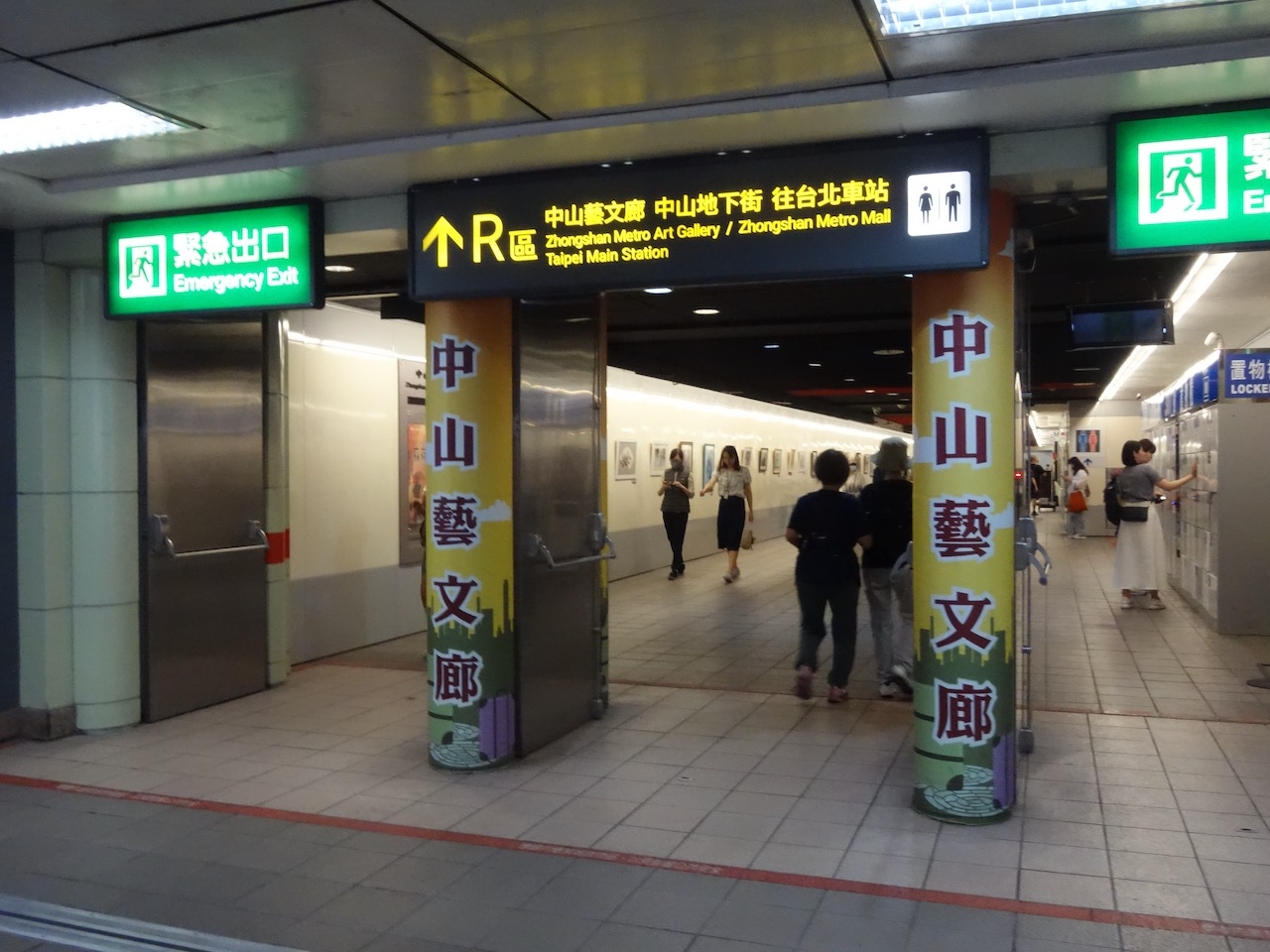 中山地下街は「R」です。淡水に行くMRTの上の地下街で、淡水信義線のラインカラーが赤=レッドなので、Rなのだと思います。