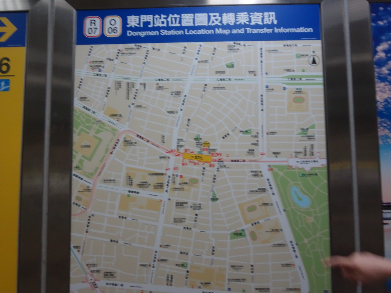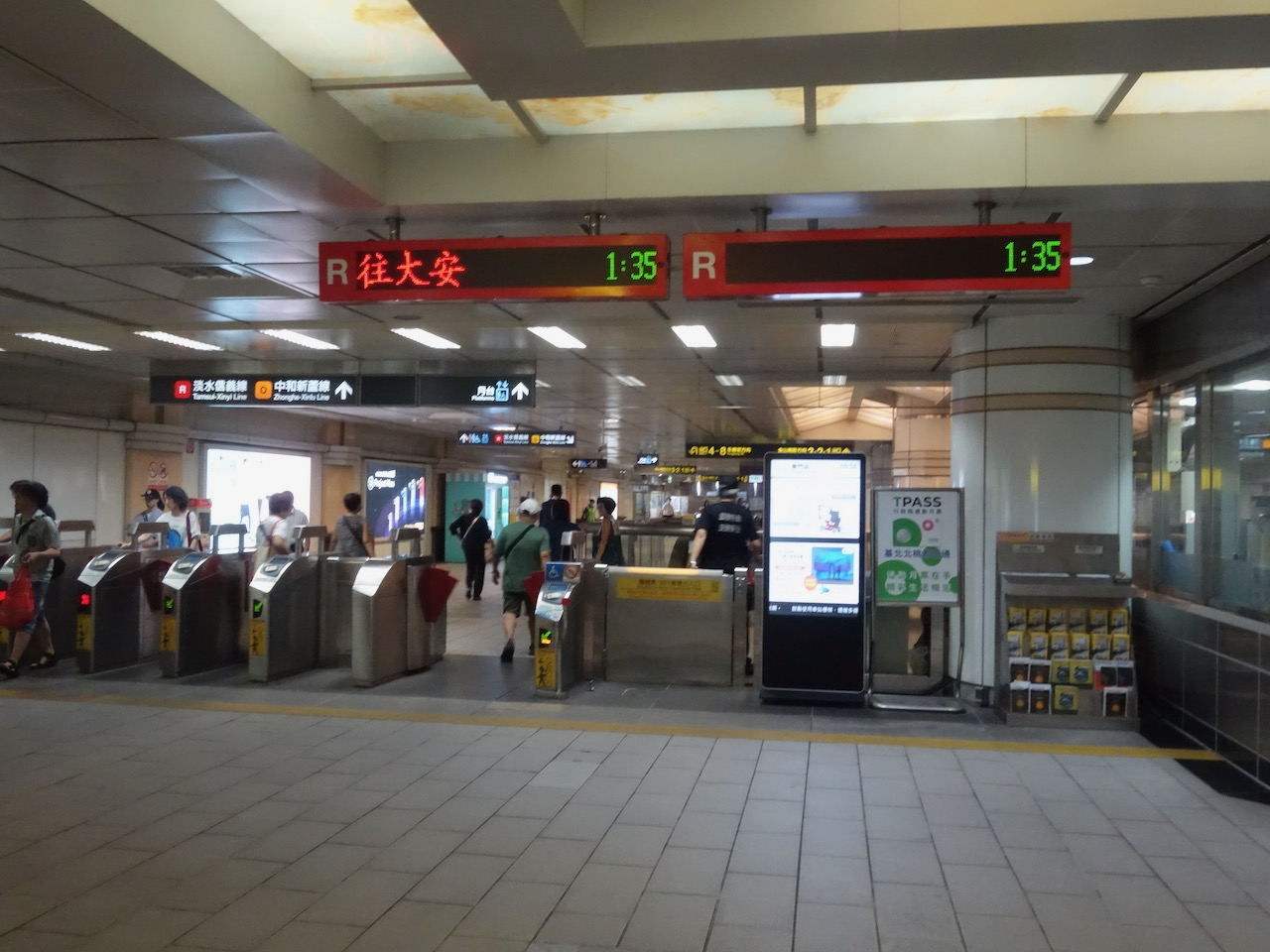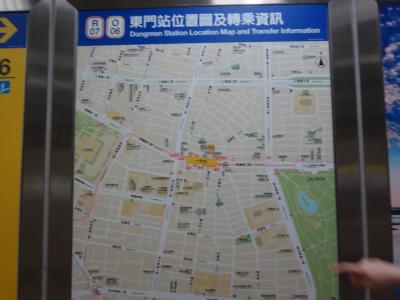 赤いラインの淡水信義線と黄色いラインの中和新蘆線との乗り換え駅で、東門市場や永康街に行くときに便利な駅です。