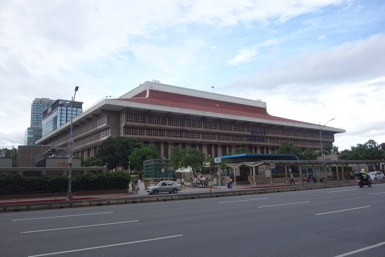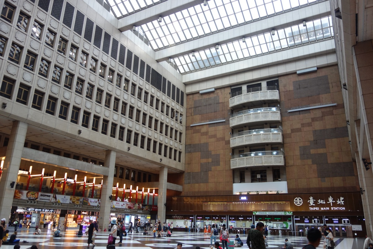 台湾の在来線と新幹線の台北駅は1つの駅舎になってます。大きな寺院風の建物ですが中は大きな吹き抜けのホール。