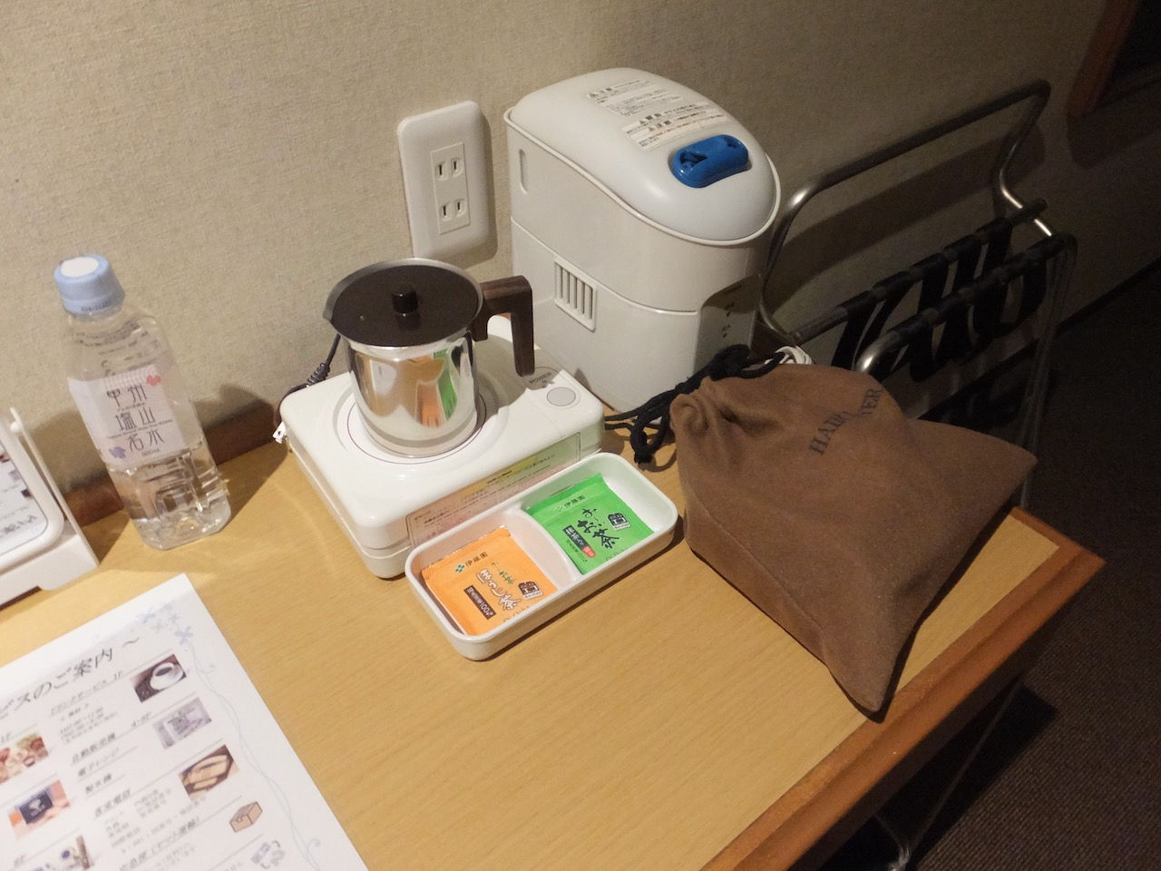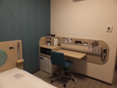 部屋はコンパクトですが機能的。部屋のテーブルや棚は小さいのですが冊子やドライヤーは直上に壁付けの物のせがあってそこに載せてあるので卓上すっきり。広く使えます。